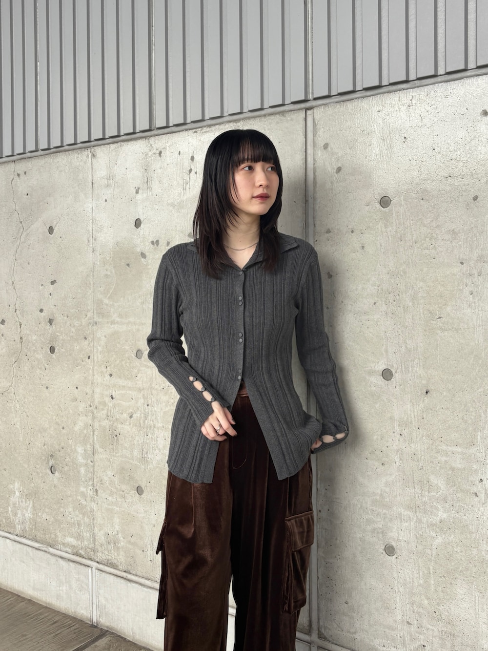 ボタンアップランダムRIBニット