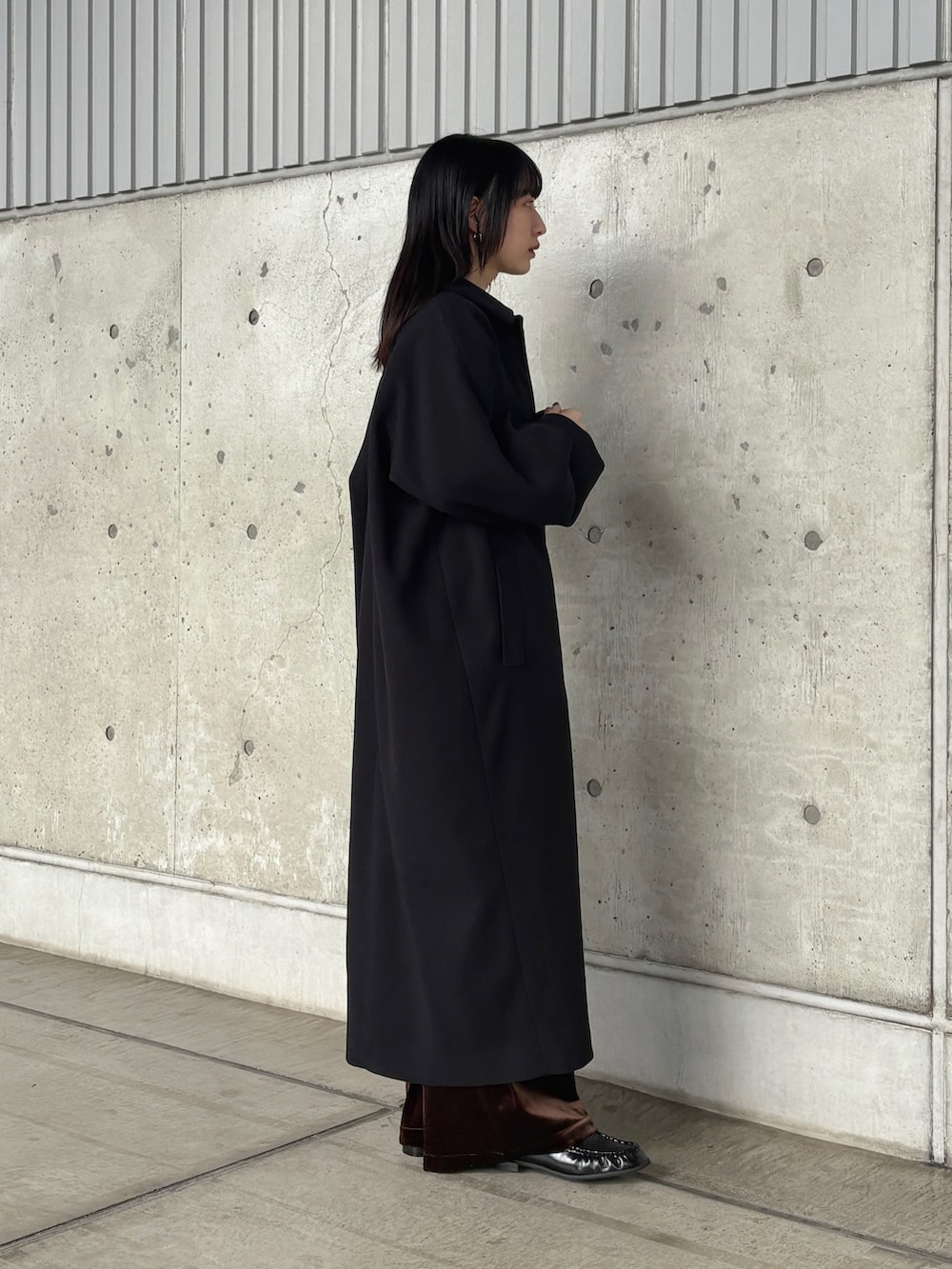ステンカラーコクーンロングコート