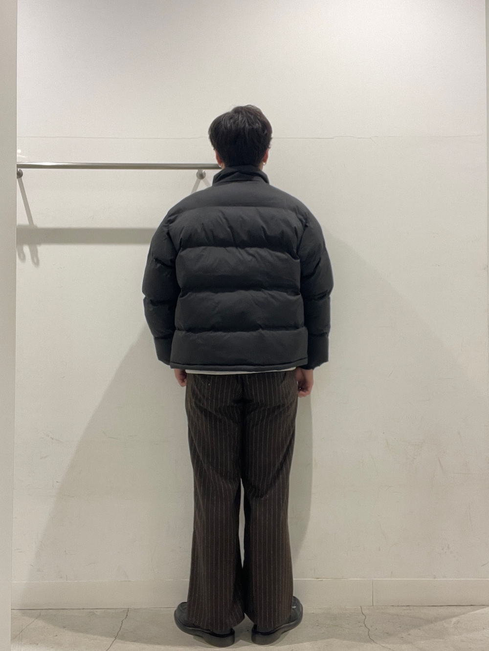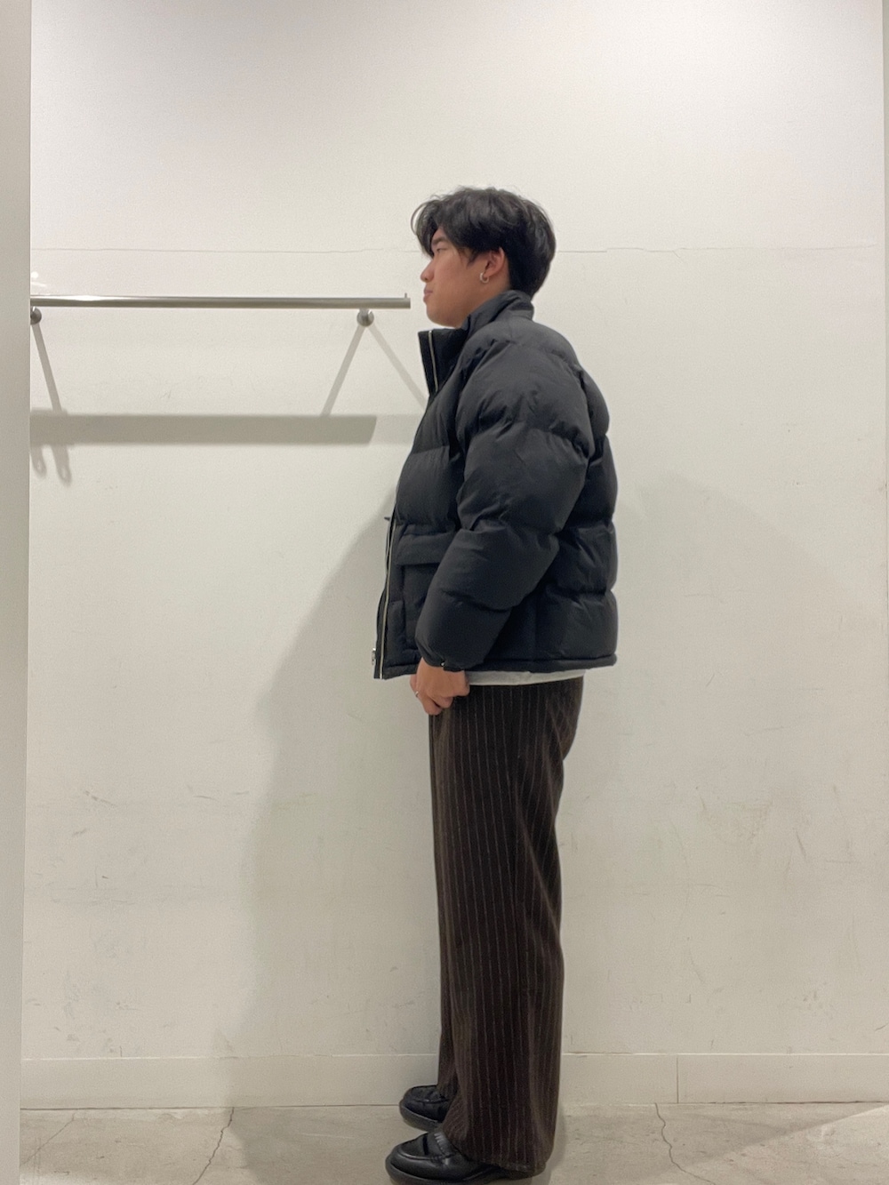 黒のブルゾンにグレーのスウェットを合わせて、ブラウンのストライプパンツで大人っぽい抜け感をプラス⬛️