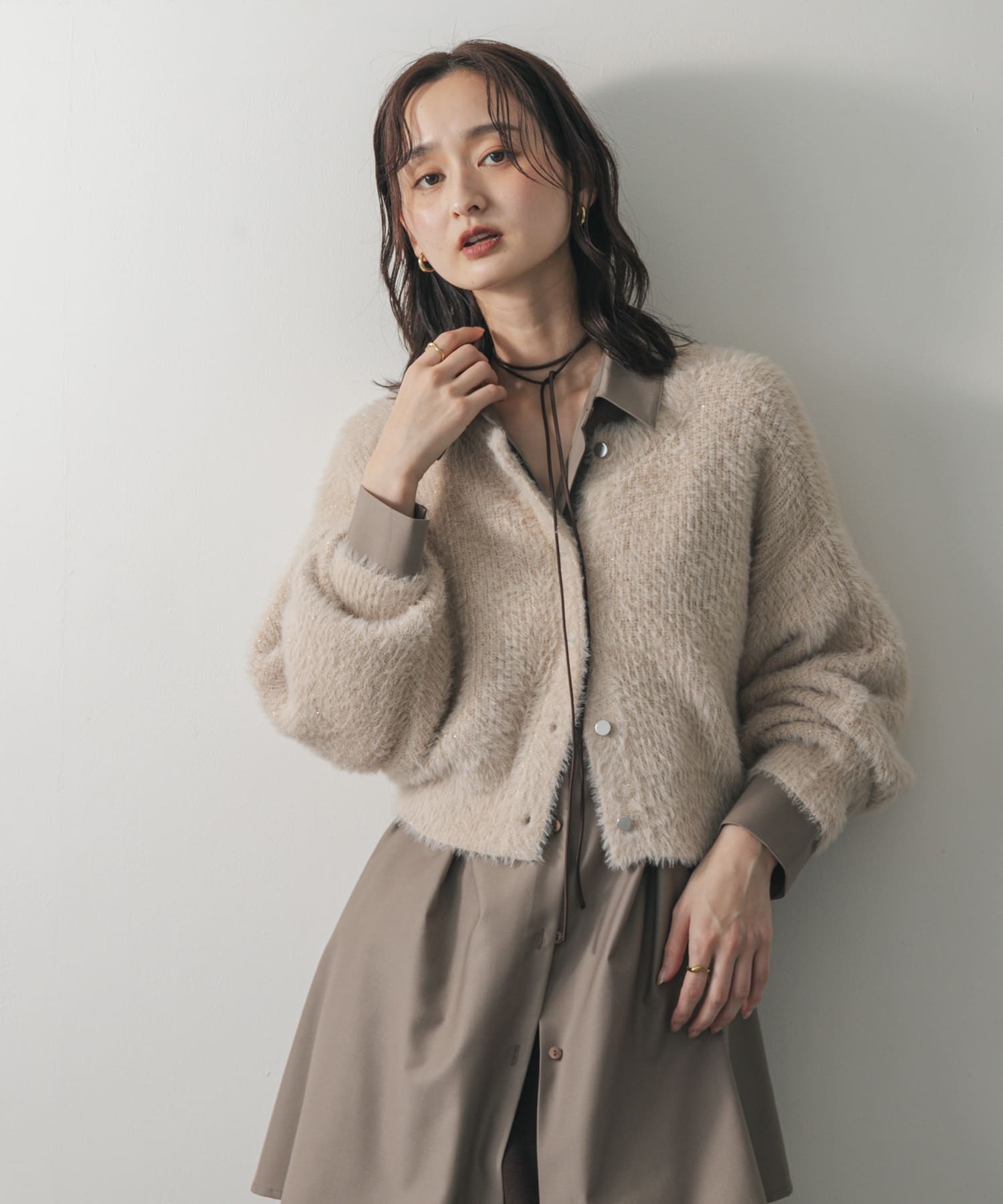 SENSE OF PLACE『一部WEB限定カラー』ラメシャギークロップドカーディガン- 着用カラー: