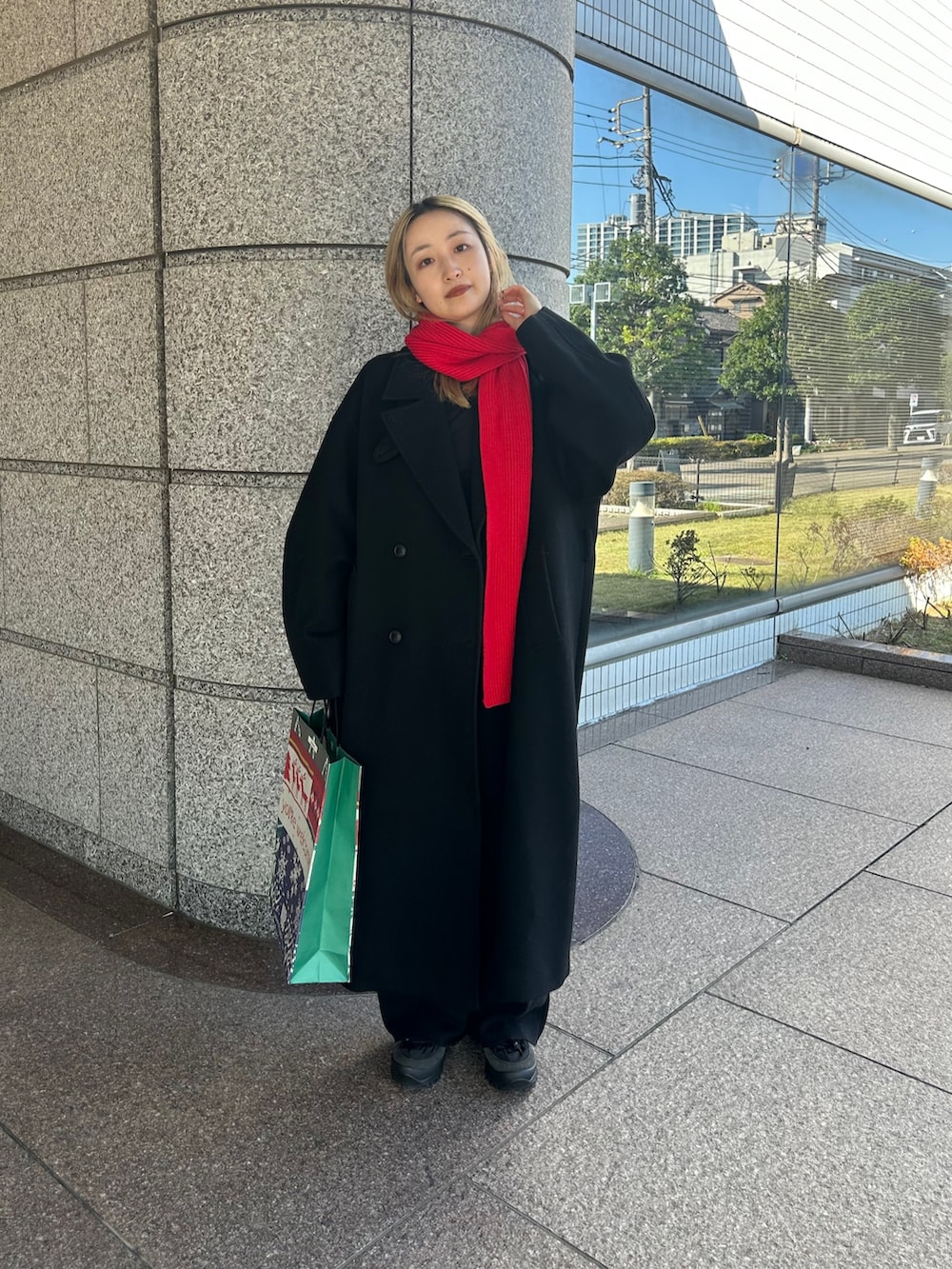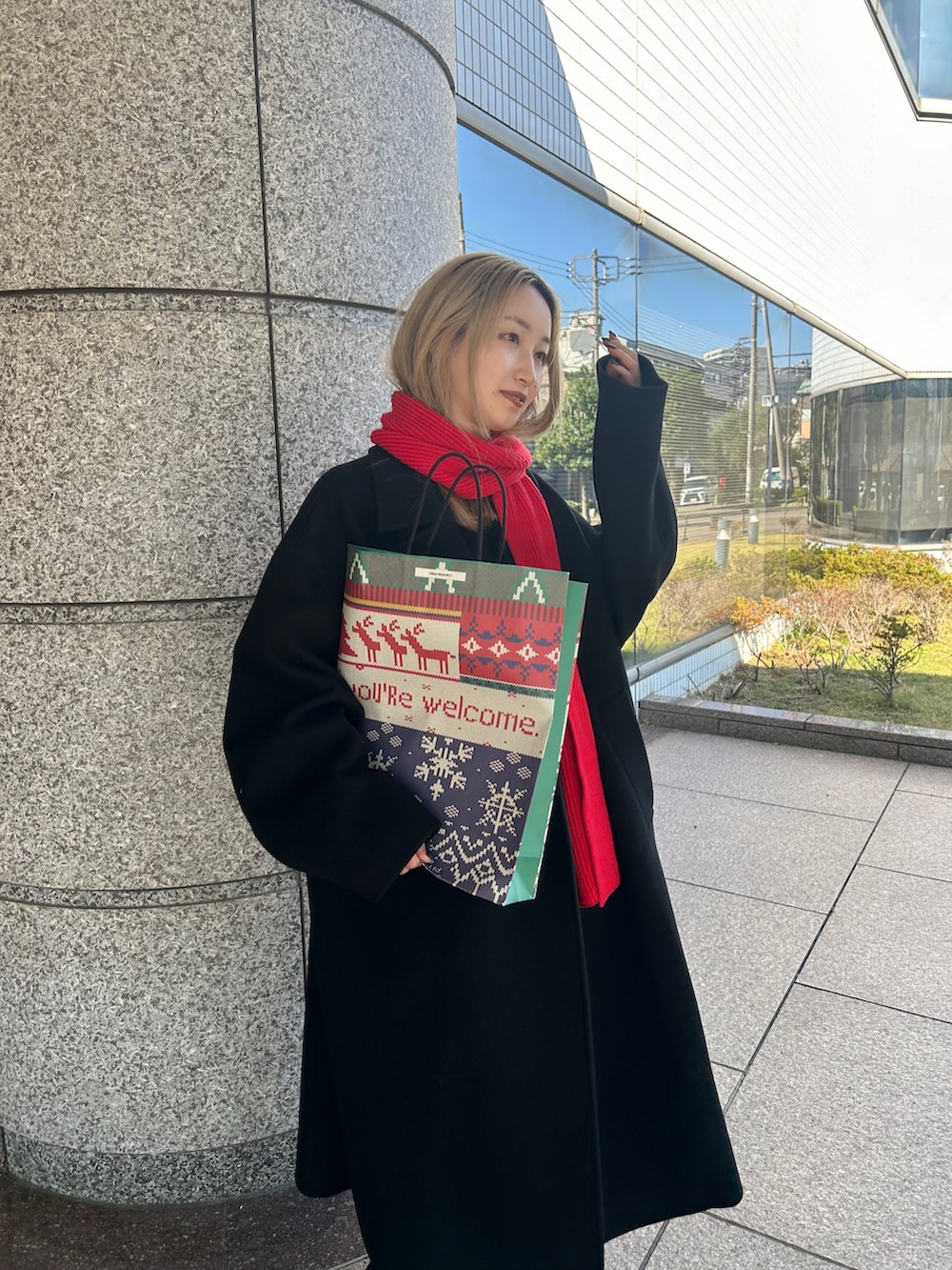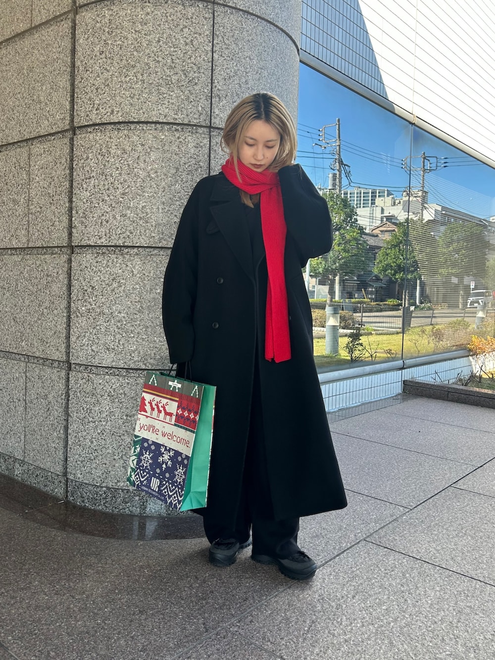 モノトーンコーデに差し色で赤を足すのもかわいいですね~