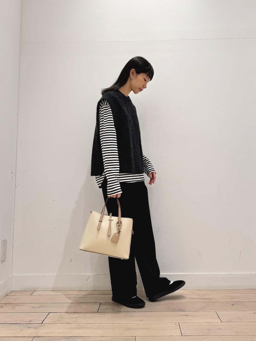 パンツは細めのストレートシルエット+センタープレス加工ですらっときれいなイージーパンツです☺️