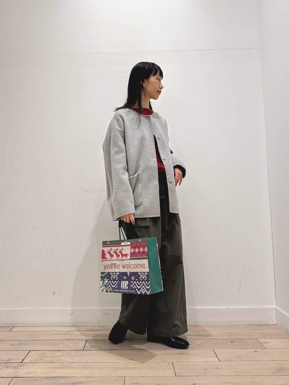 赤×カーキ×黒ブーツでホリデー感満載になるので、お持ちのアイテムでも是非やってみてください♪