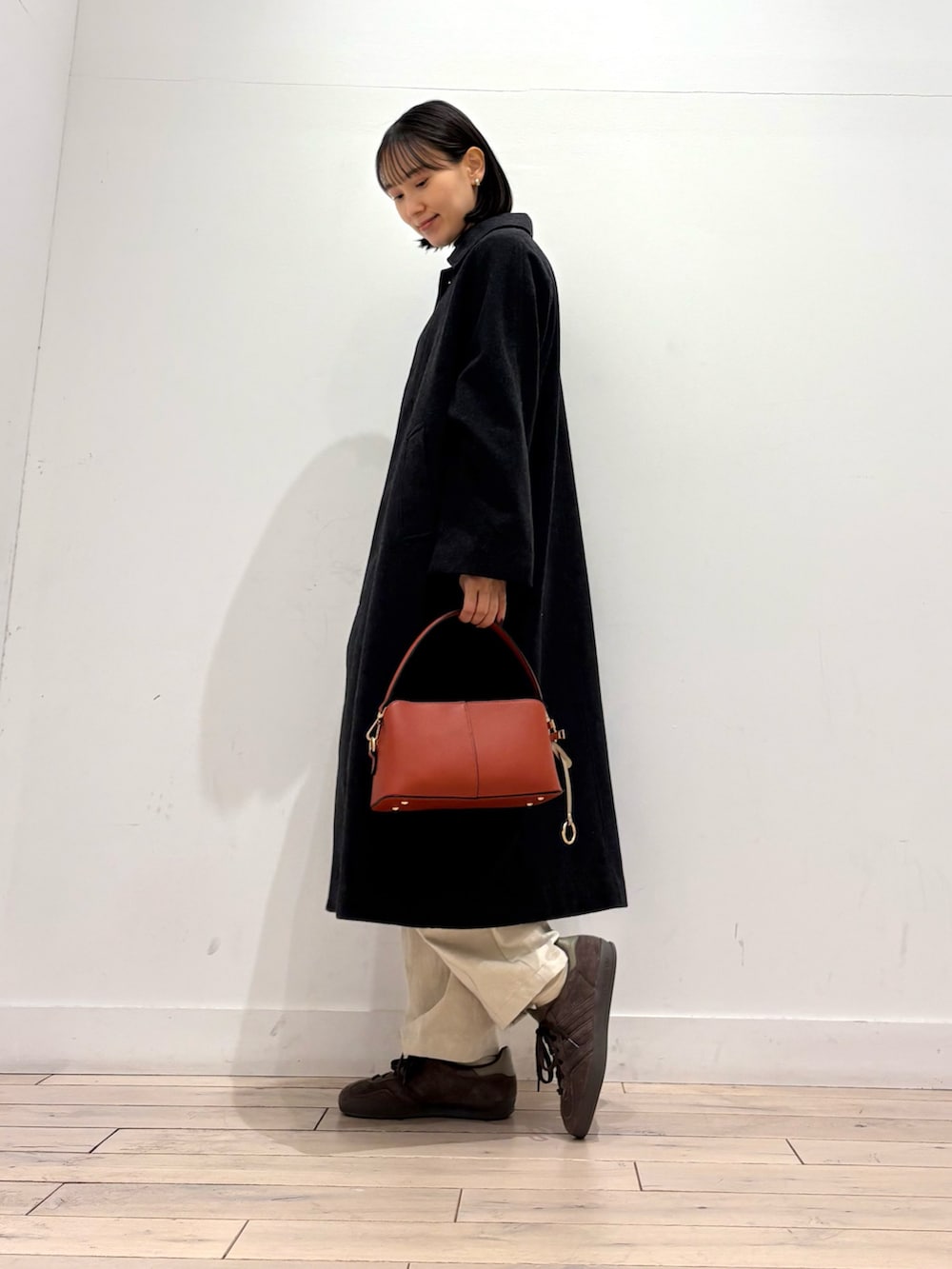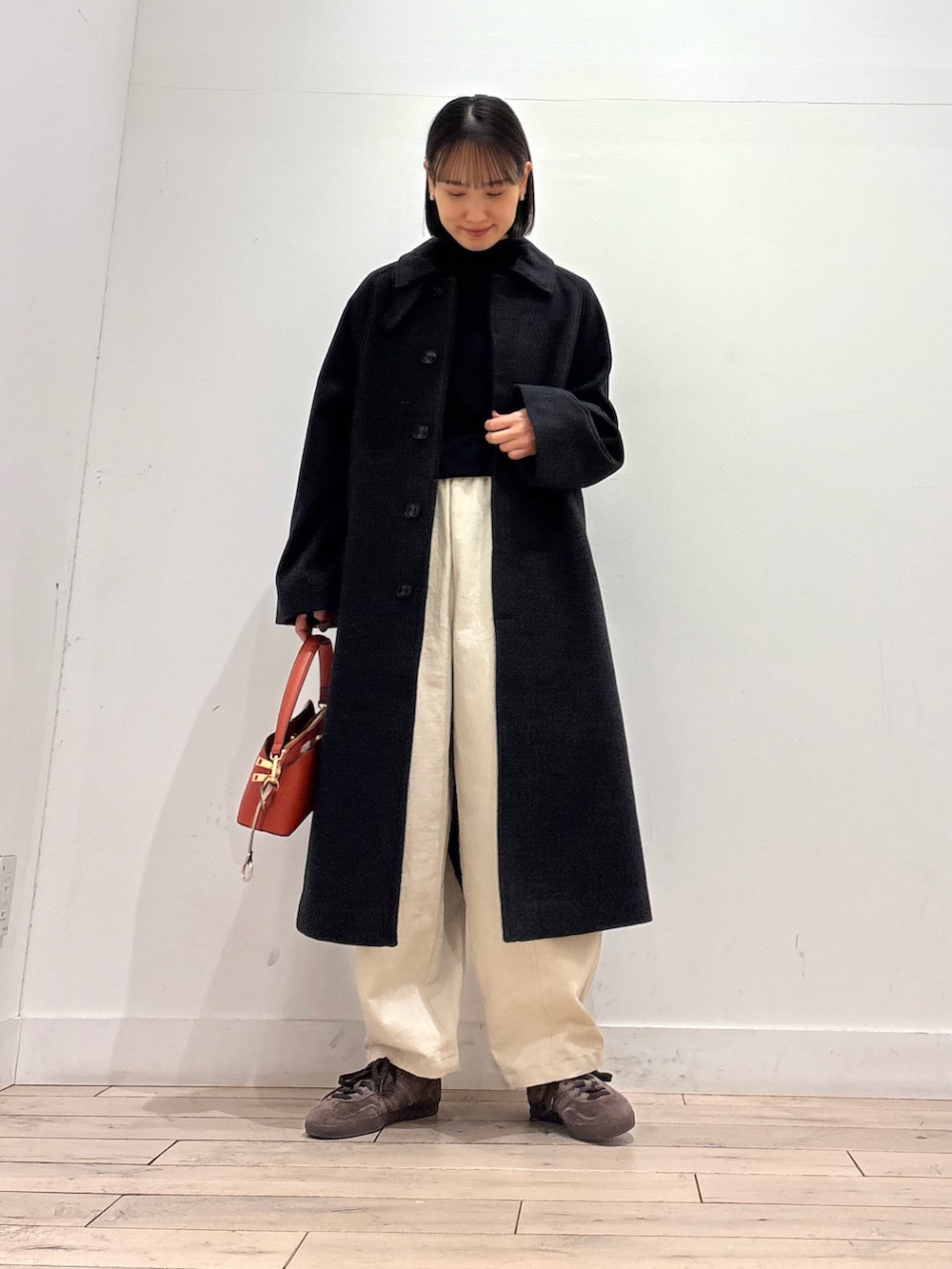 しっかり長さのある丈が羽織るだけで雰囲気のあるコーディネートに👏