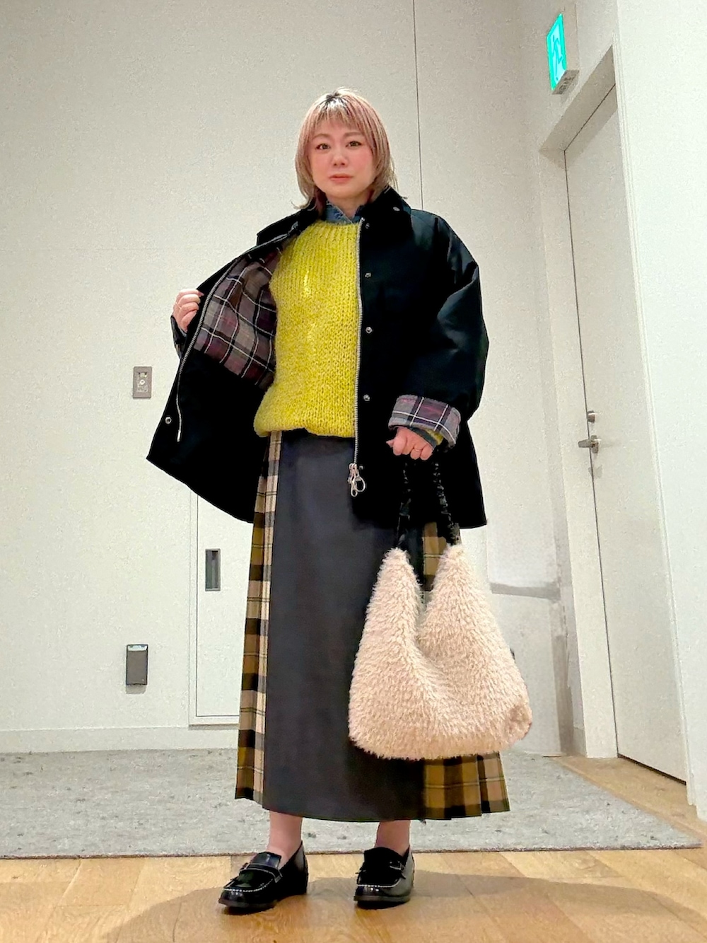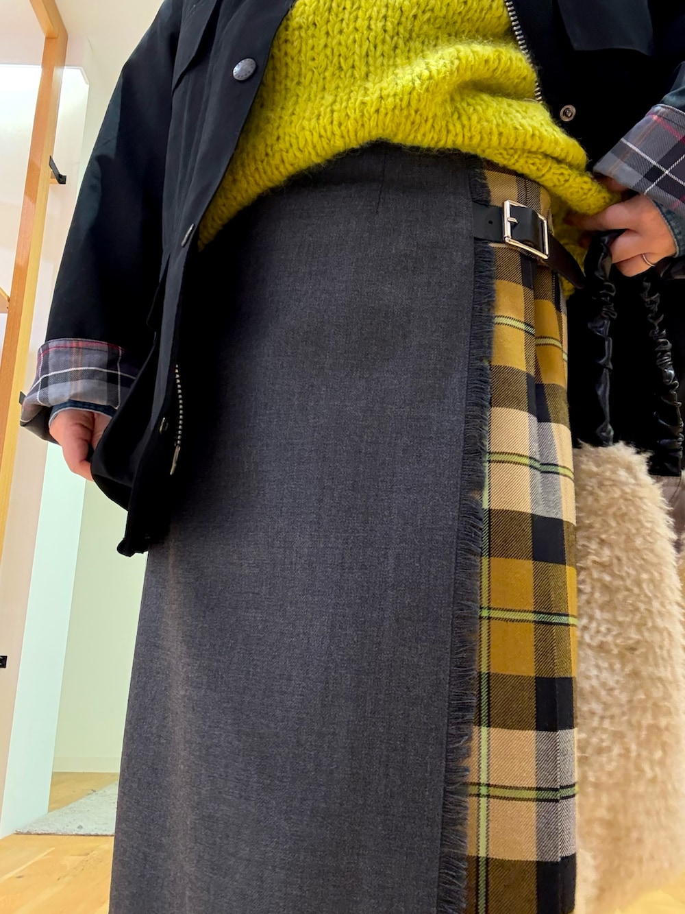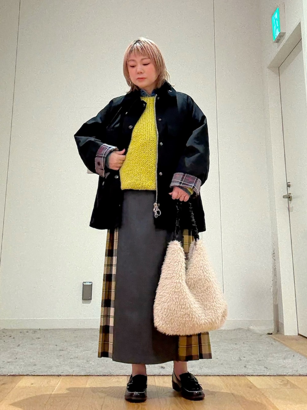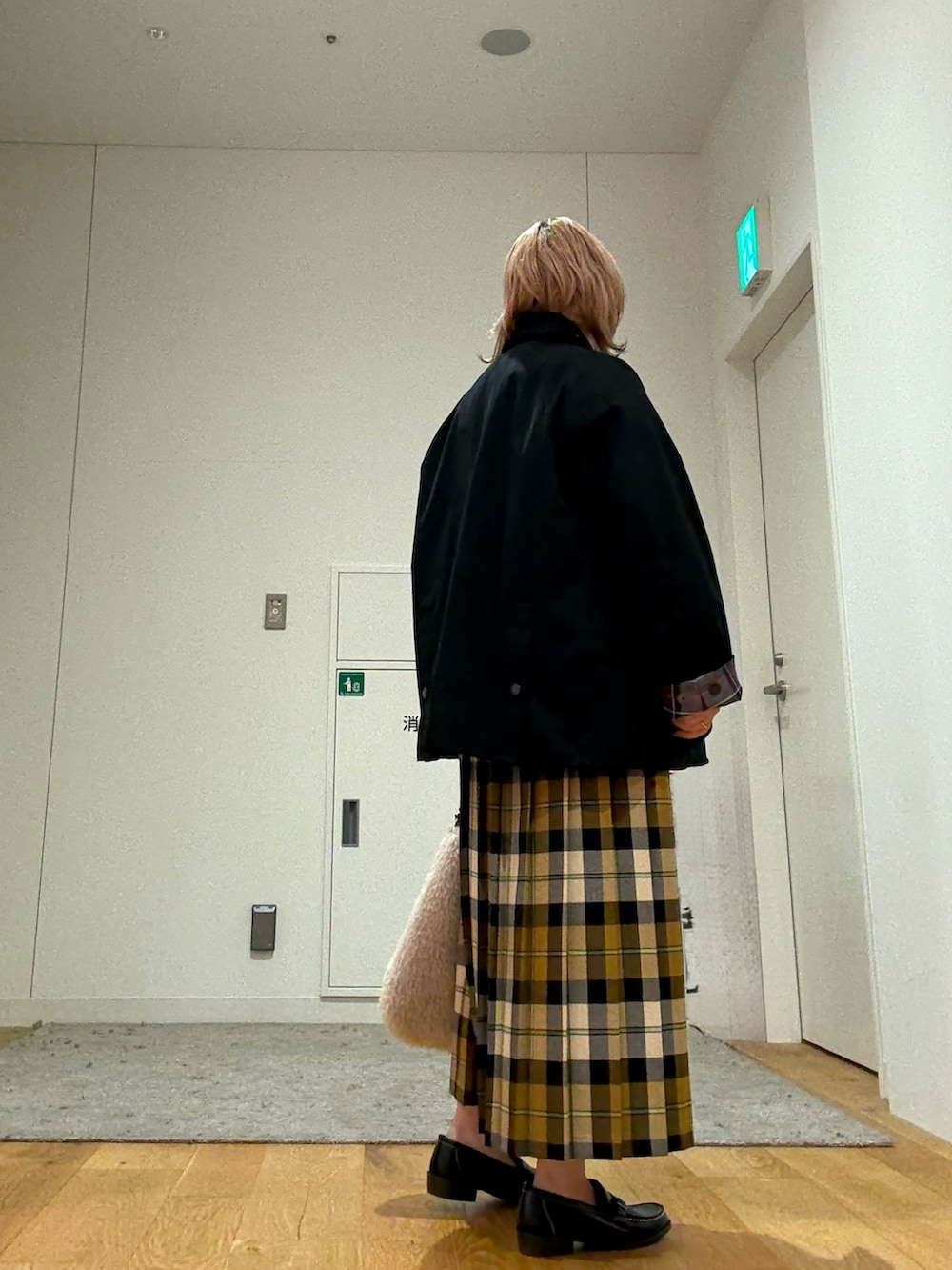 デザインがとても可愛いチェックのスカートとバブアーのジャケットを合わせて大人っぽくコーディネートしました!