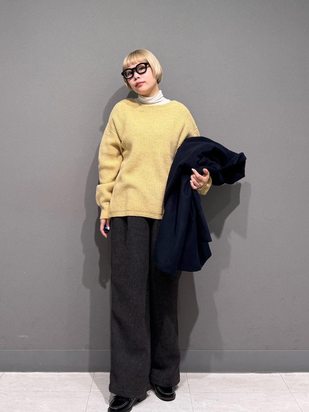 相性抜群なネイビーのアウターを。