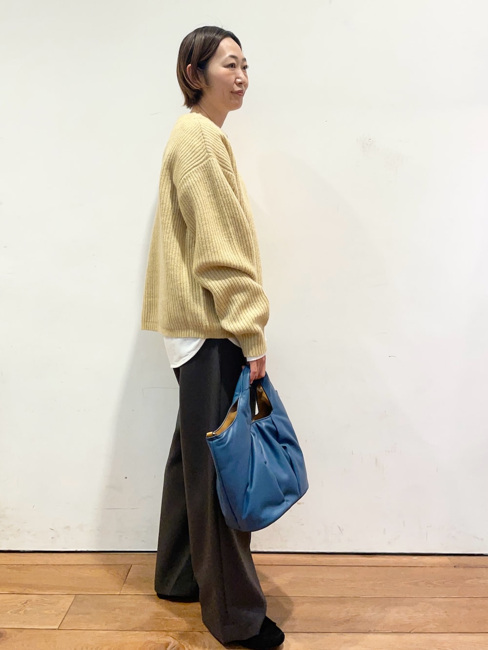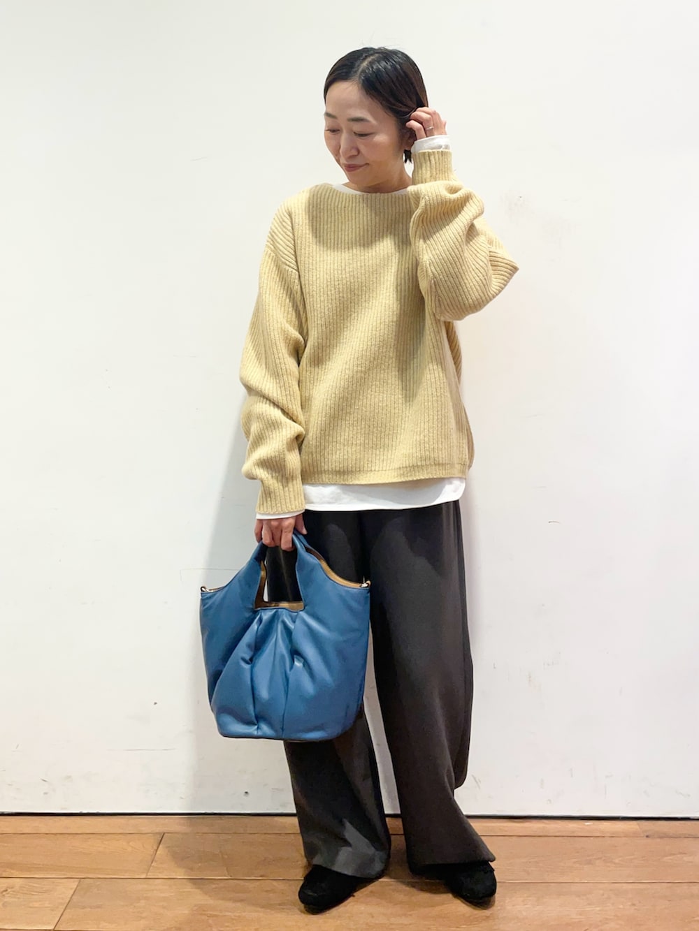 ハミルトンウールのニットはとても柔らかい着心地で、ボートネックなので首周りもスッキリした印象になります✨
