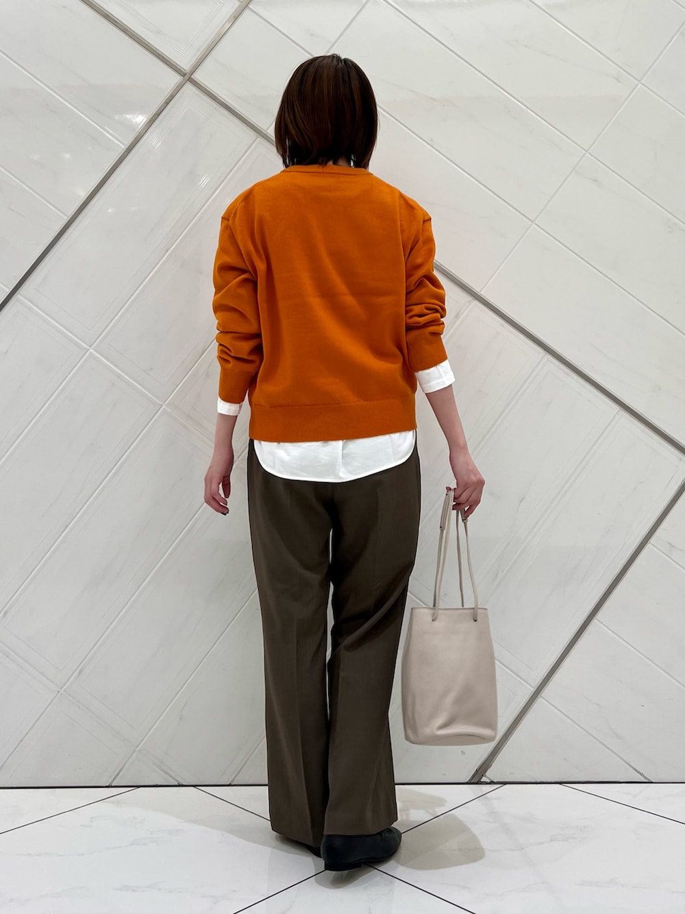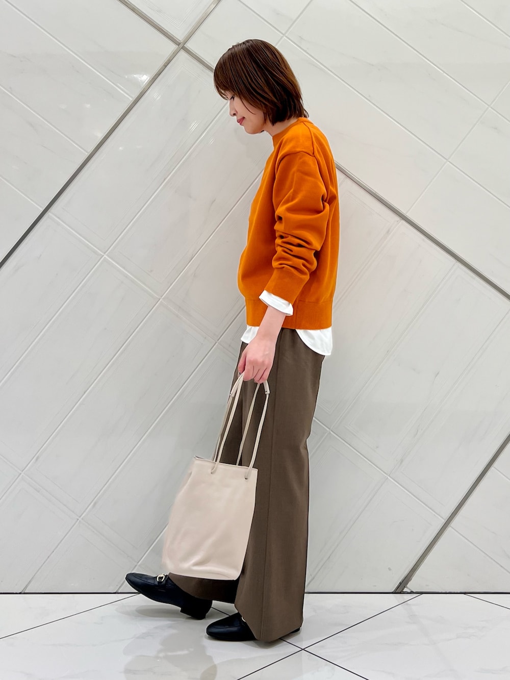 ほんのりフレアシルエットが綺麗なパンツは