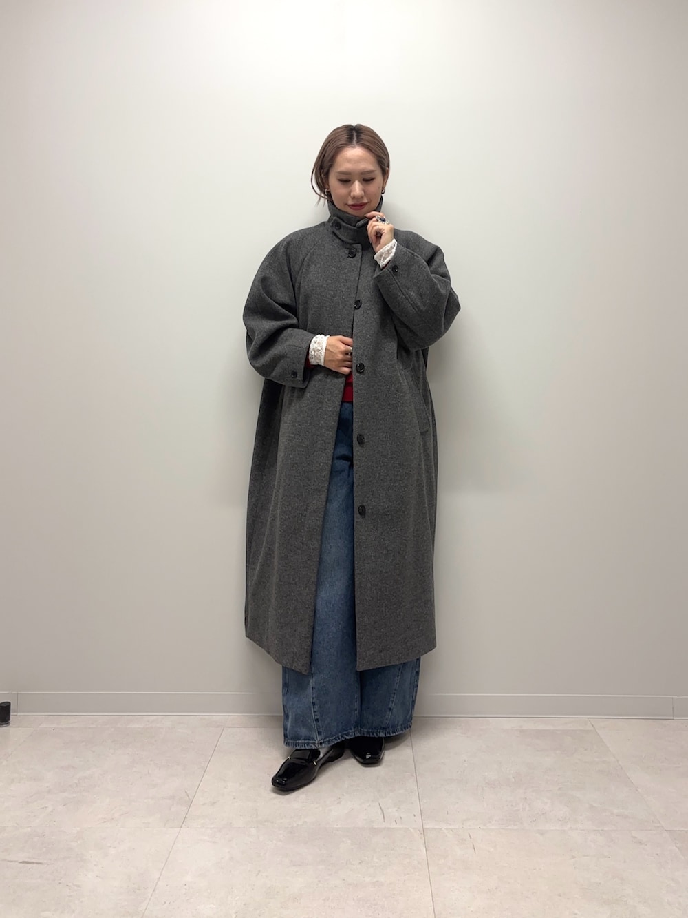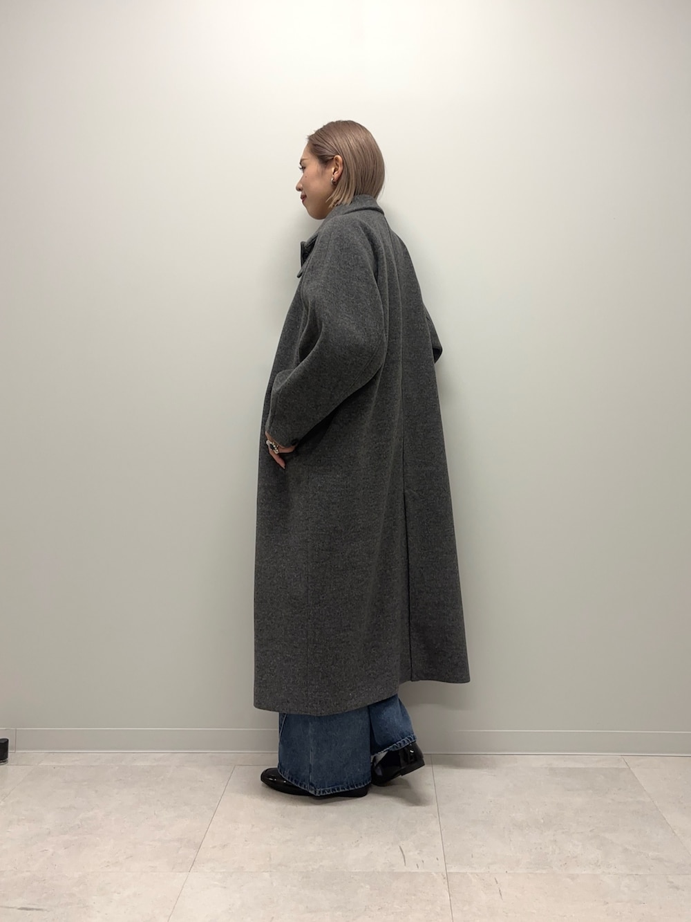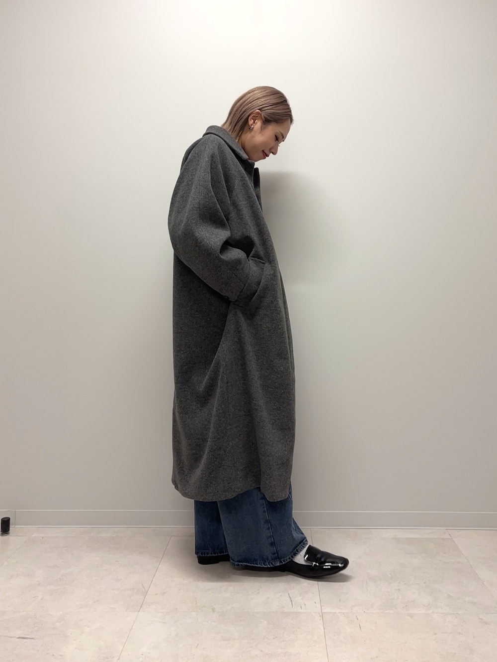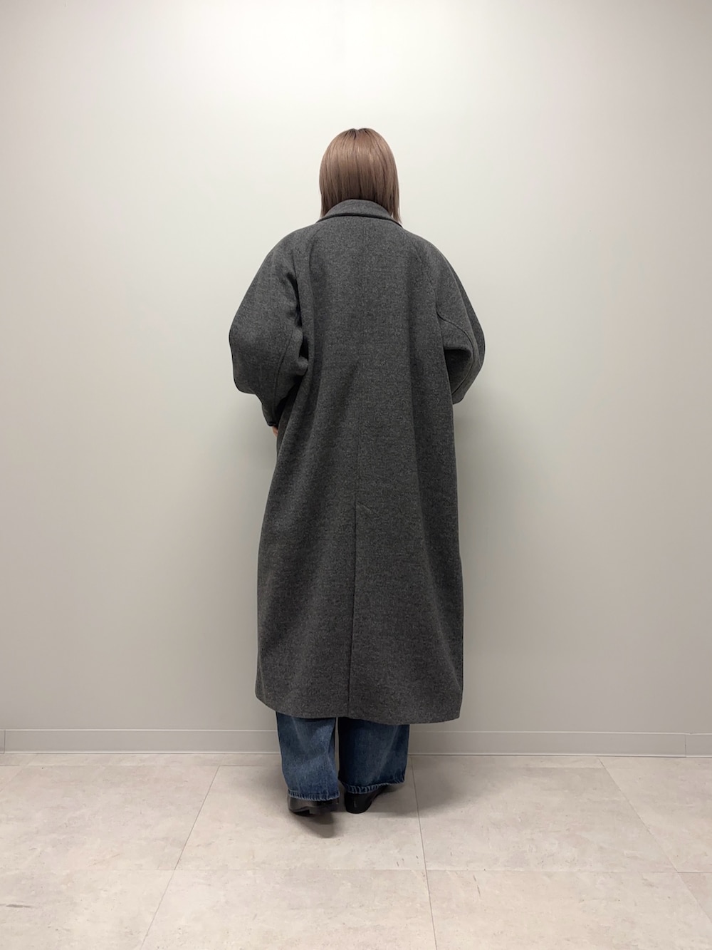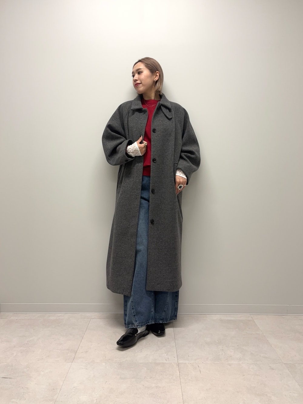 ステンカラーのロングコートで襟は2WAY仕様になっております!ロングですが重さは気にならずお袖や肩周りもゆとりがありとても楽に来て頂けます!中物も厚みのあるニットでも余裕で着れちゃいます◎バックスリットも入っており抜け感も出るのでロングコートも重たく見えないです◎