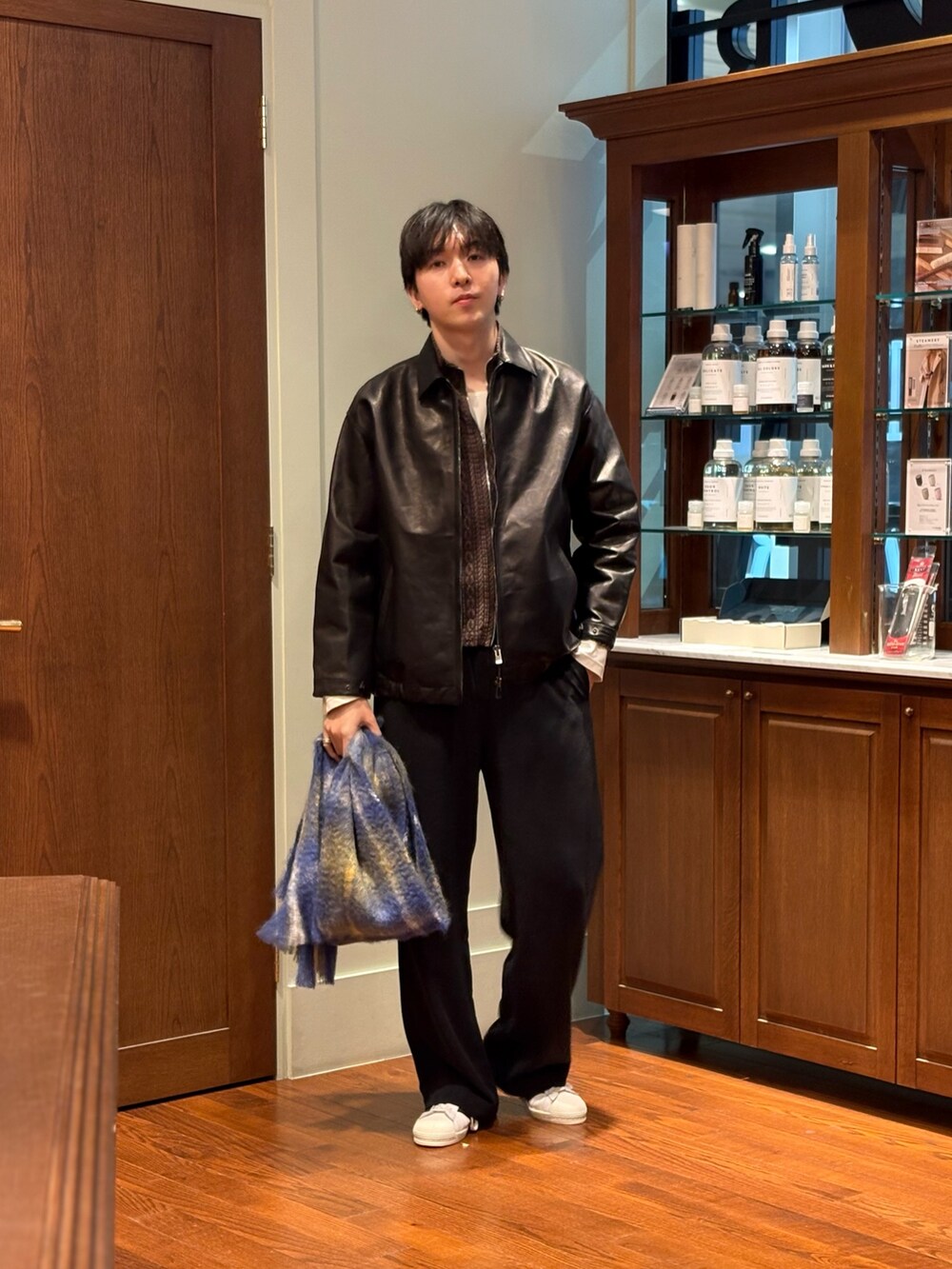 そこに合わせる814EZCARAY(エスカライ)のモヘアマフラーもグッとスタイリングを引き上げてくれるアイテムになっております。