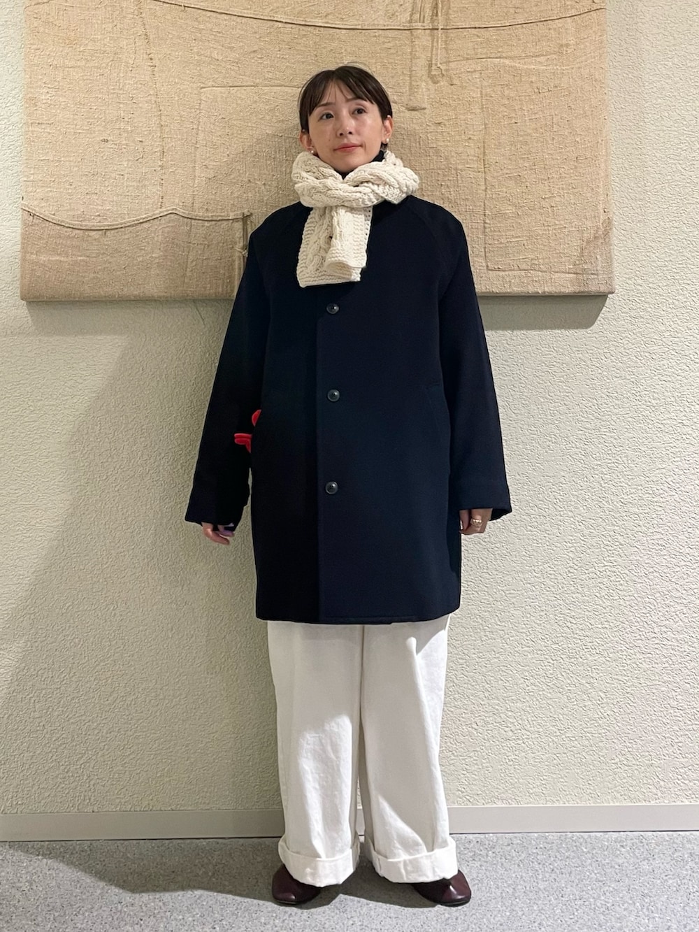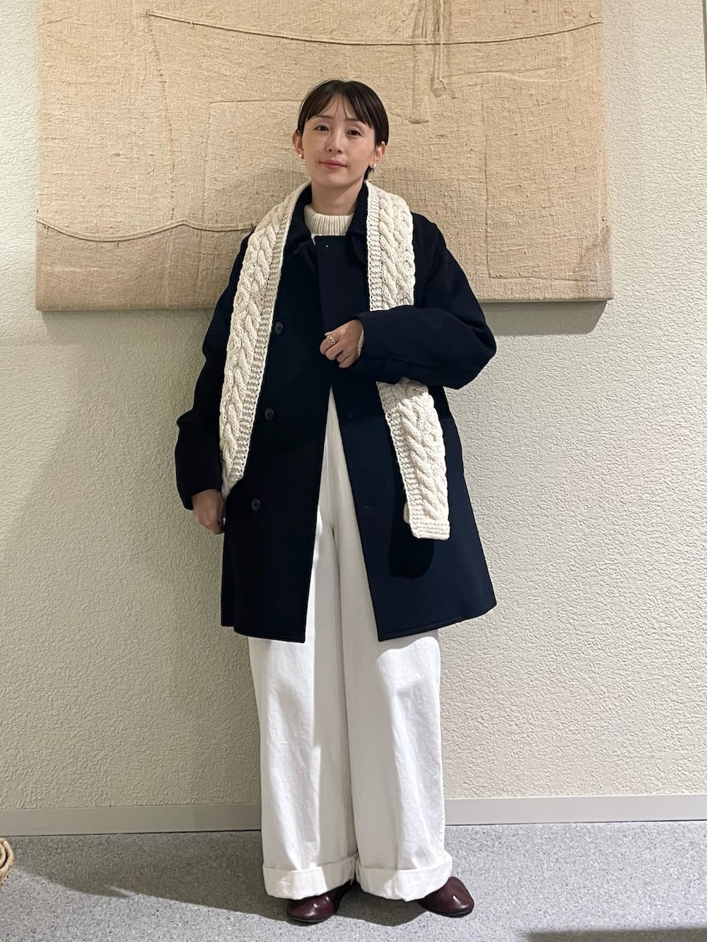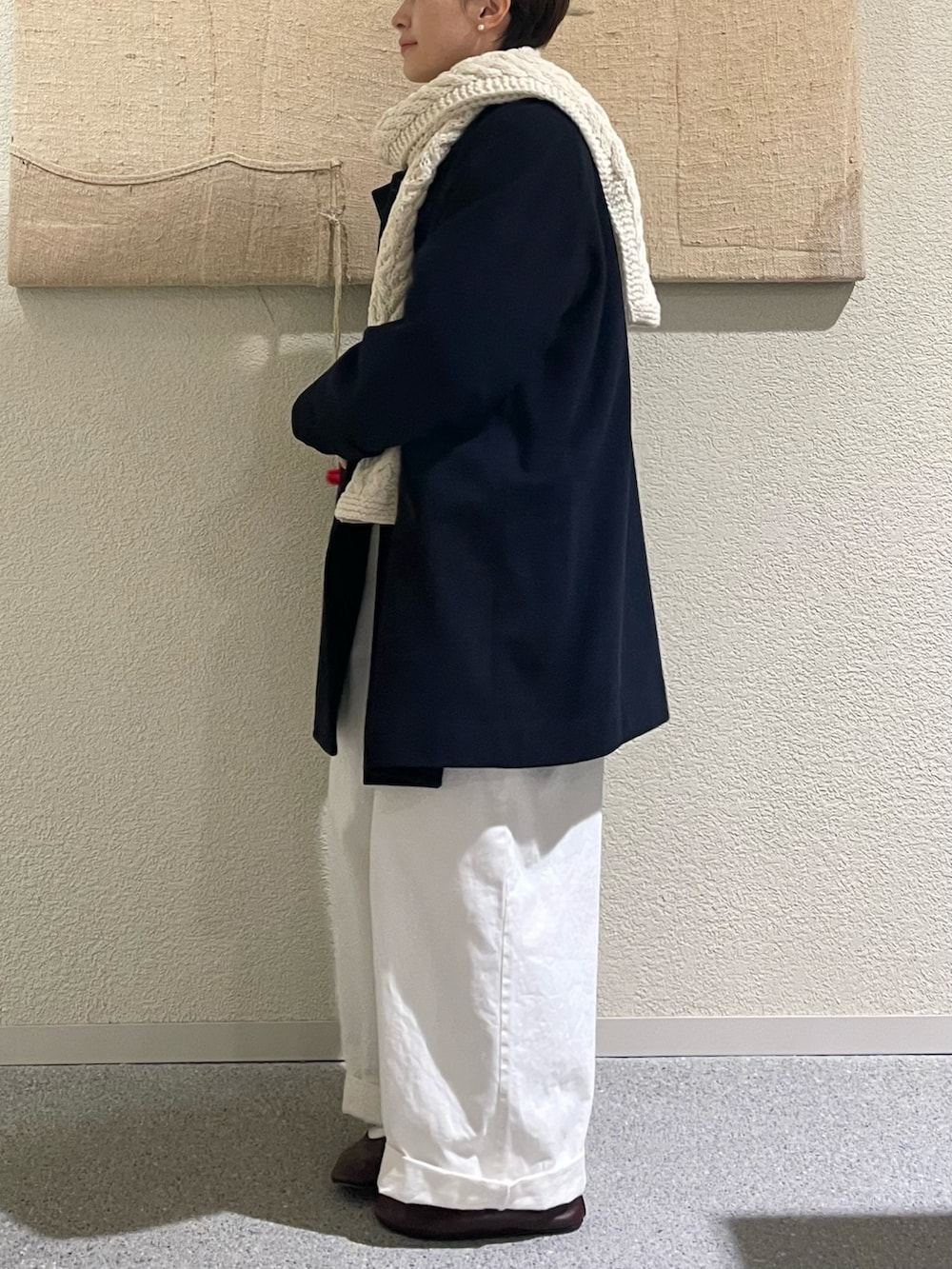 小柄な方だと大きめすぎるマフラーって持て余しがちかなぁと思うのですが、細めのシンプルさがとても良くて、これは使えそうです!暗くなりがちな冬スタイルを顔まわりから華やかにしてくれます⛄️