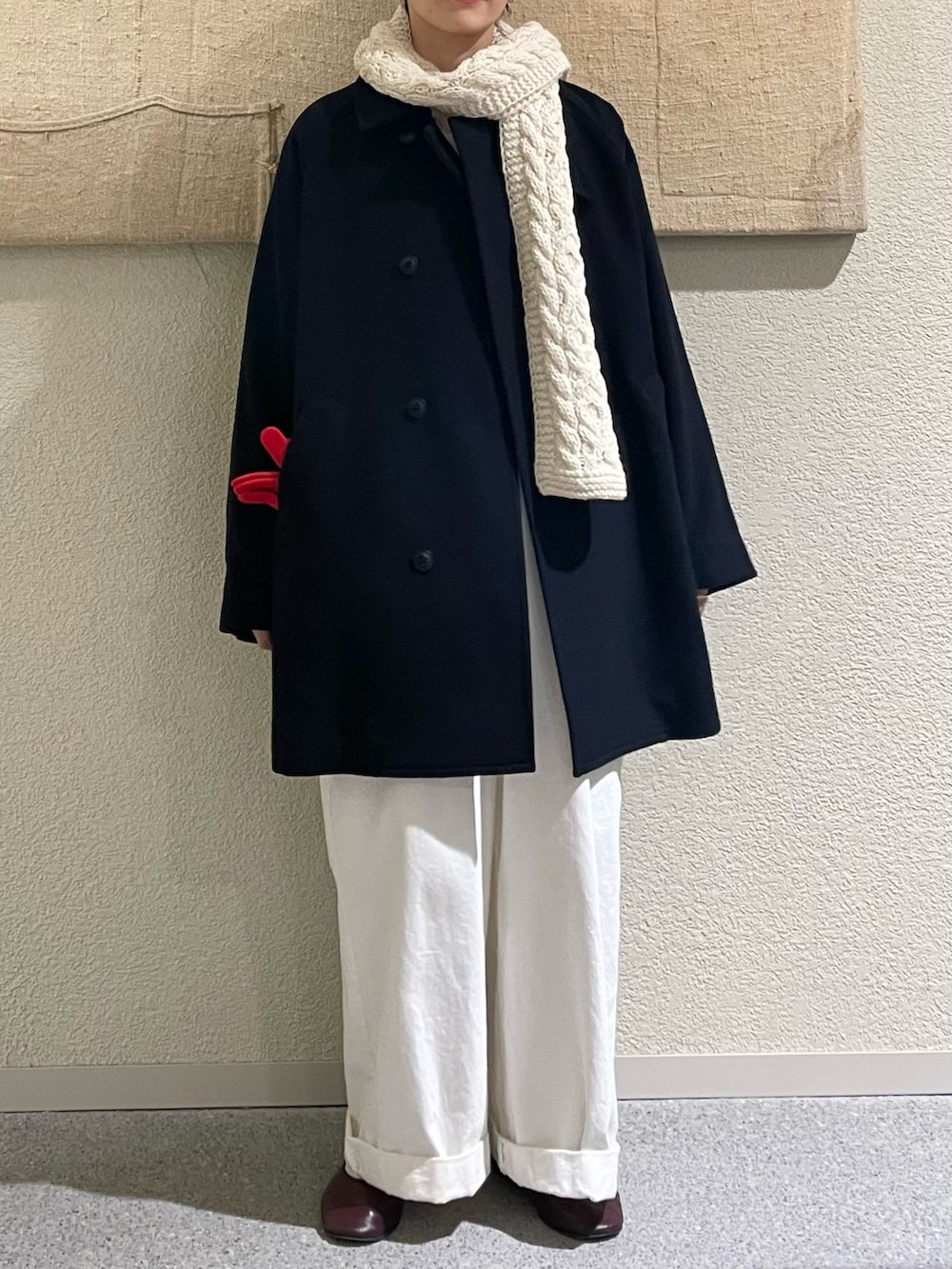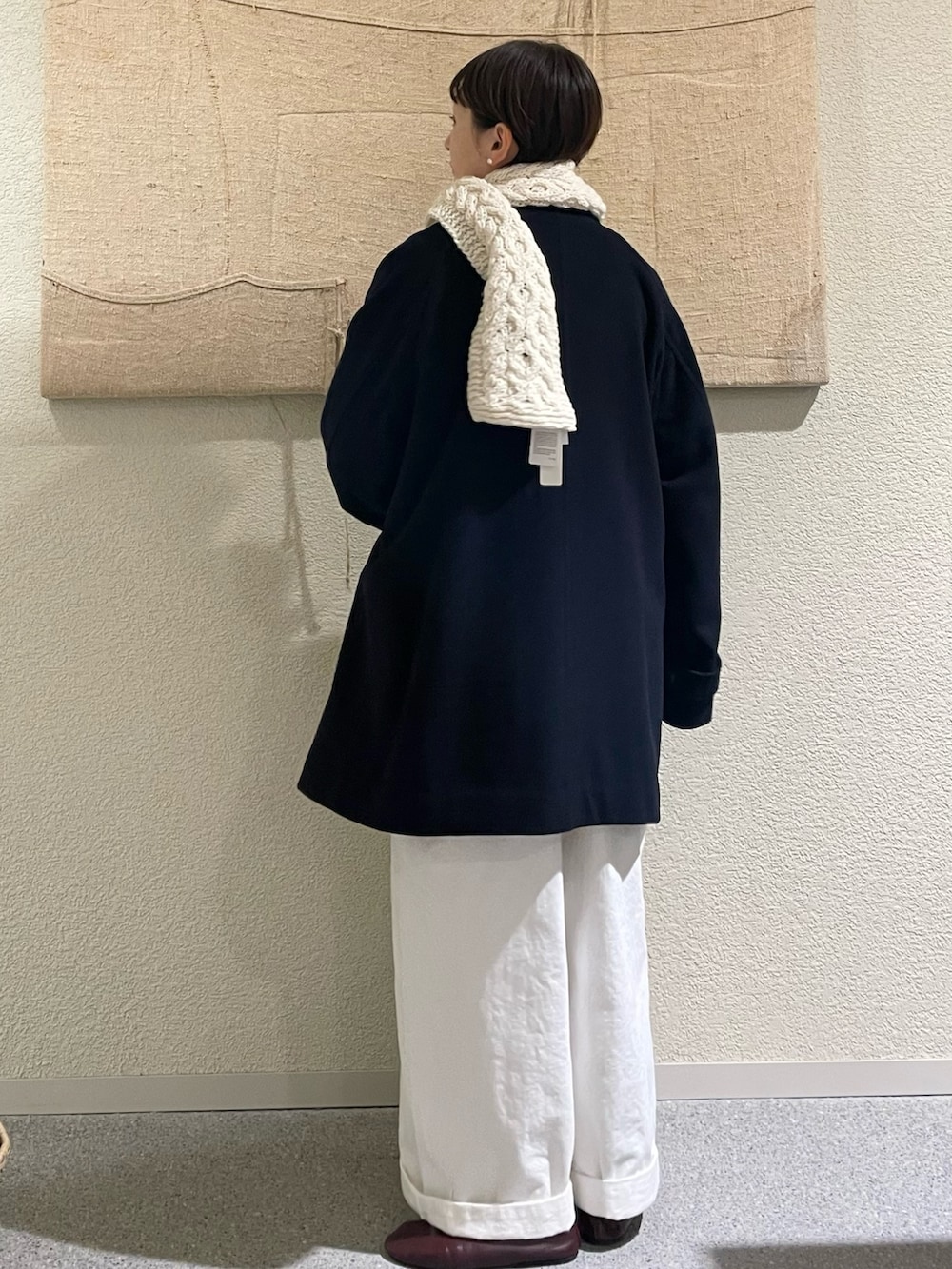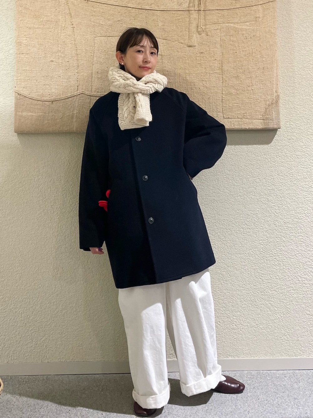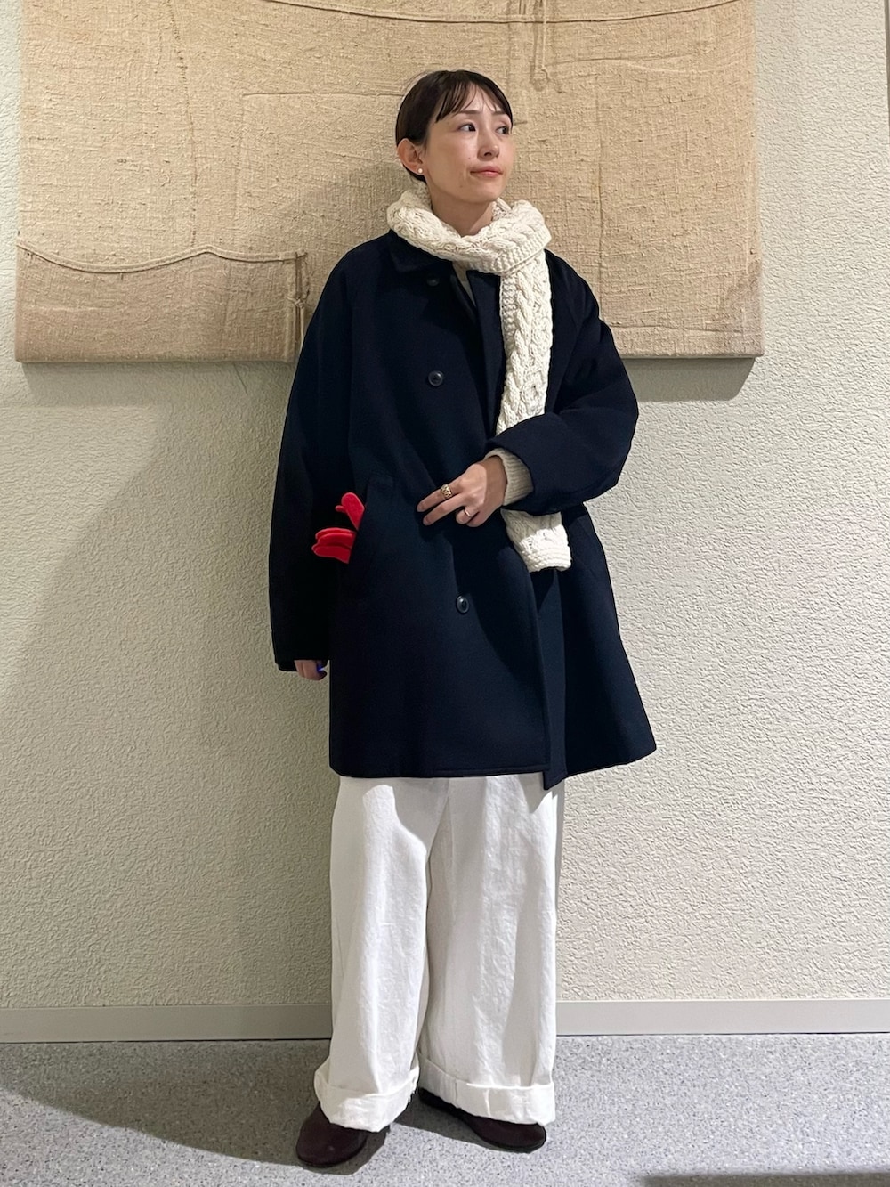 小柄な方だと大きめすぎるマフラーって持て余しがちかなぁと思うのですが、細めのシンプルさがとても良くて、これは使えそうです!暗くなりがちな冬スタイルを顔まわりから華やかにしてくれます⛄️