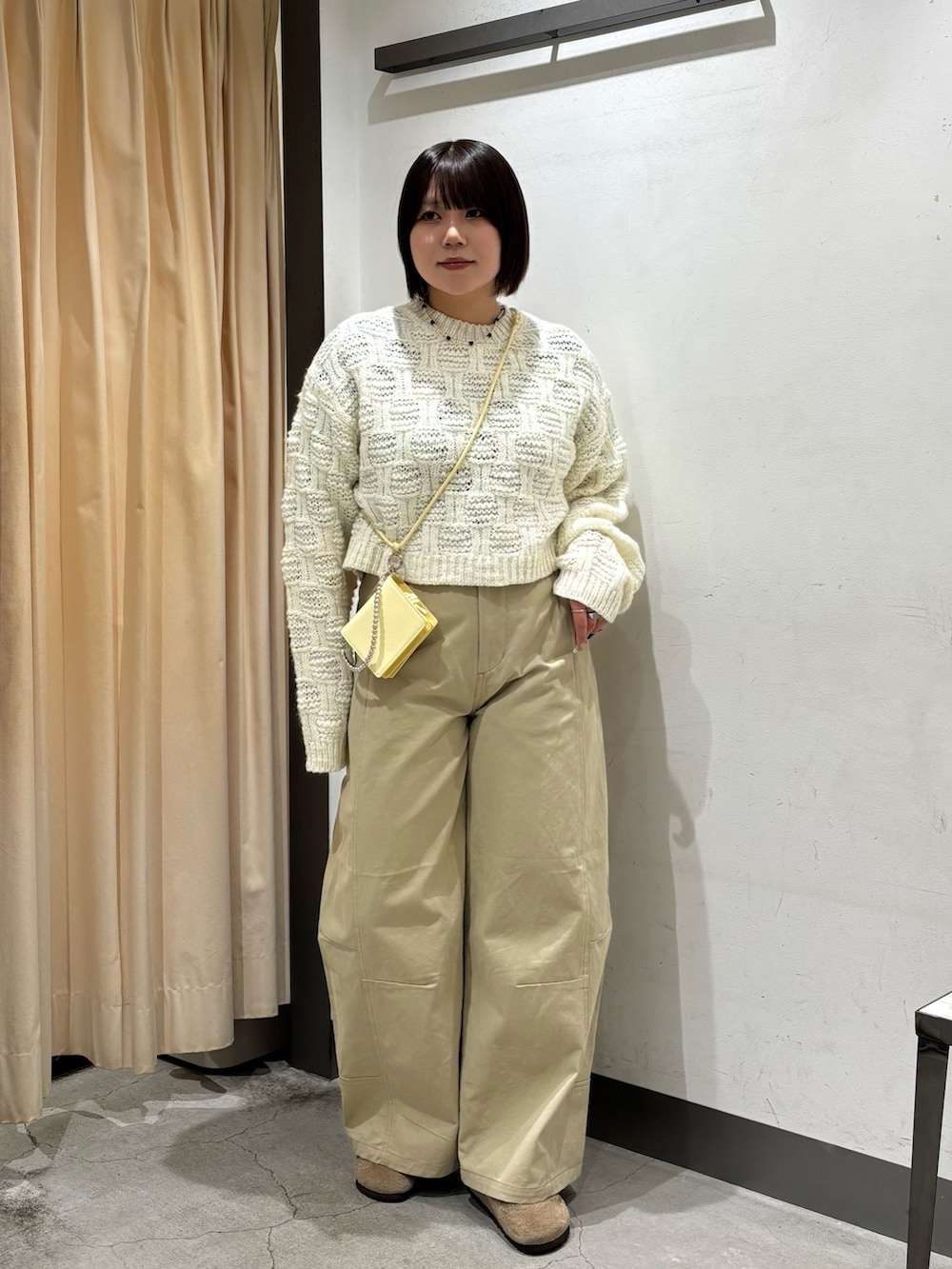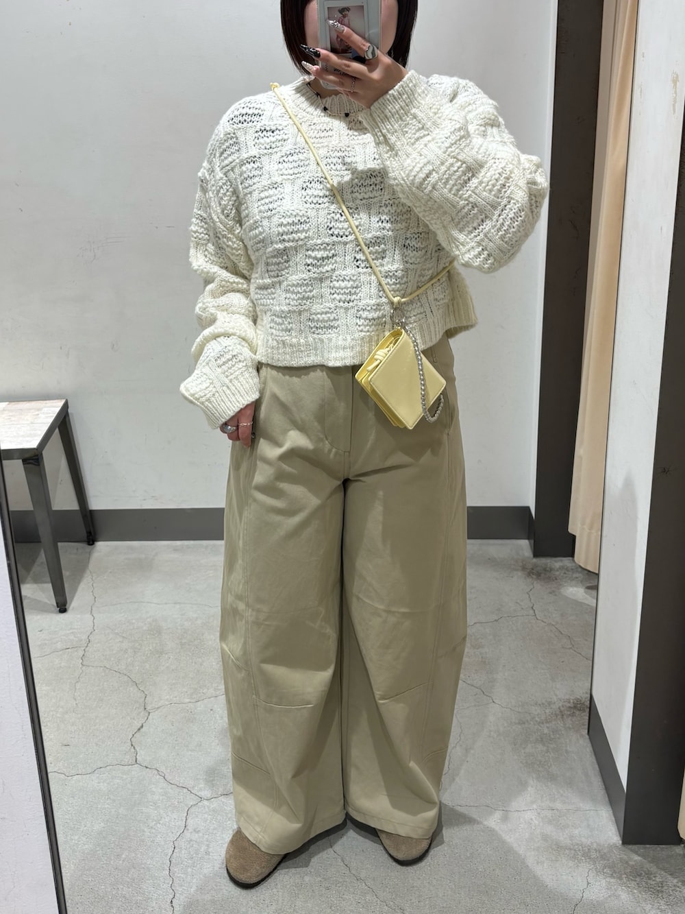 私はあまりコクーンシルエットは履かないのですが、試着してみてシルエットのキレイさにびっくり₍ᐢ ɞ̴̶̷.̮ɞ̴̶̷ ᐢ₎✨ワイドなシルエットなので脚のラインを拾わずスタイルアップしちゃいます!!ワンサイズですが154cmの私でも丈感は問題無く着用でき、ウエストは下腹が若干きついですが入ったもん勝ちなのでIVORYをリアルバイです🛒