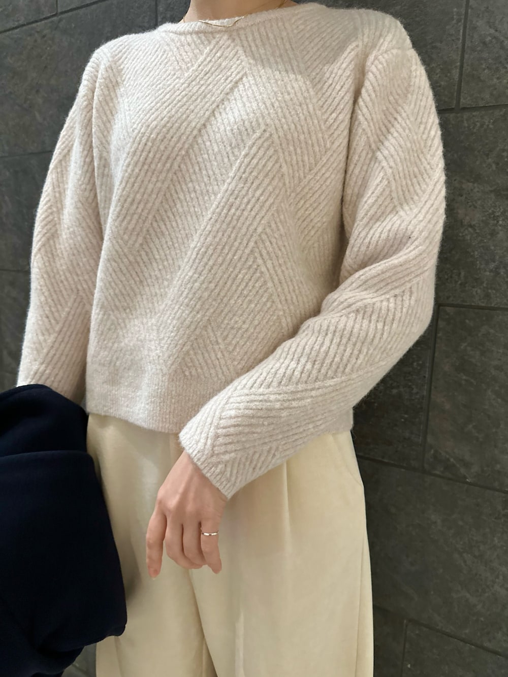 ダイヤ柄編ラメミックスニット