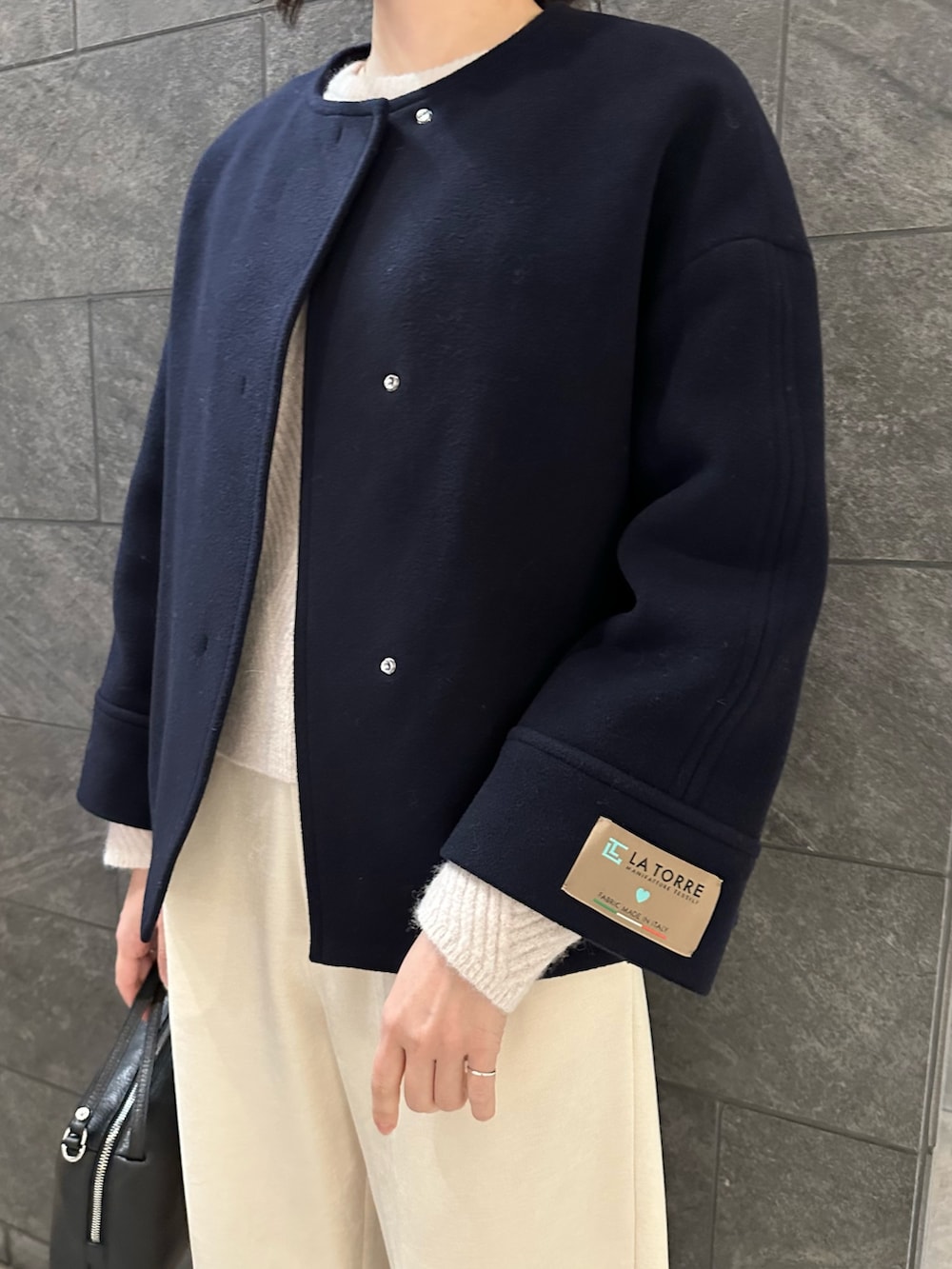 LA TORREショートノーカラーコート