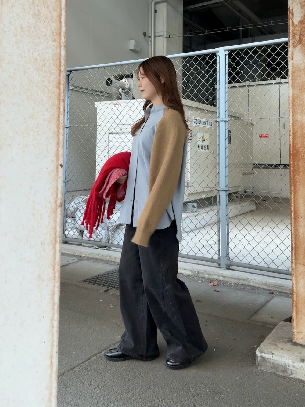 一枚でおしゃれ見えするニットスリーブシャツは、袖がニットなのでフォーマルになりすぎず着ていただけます!