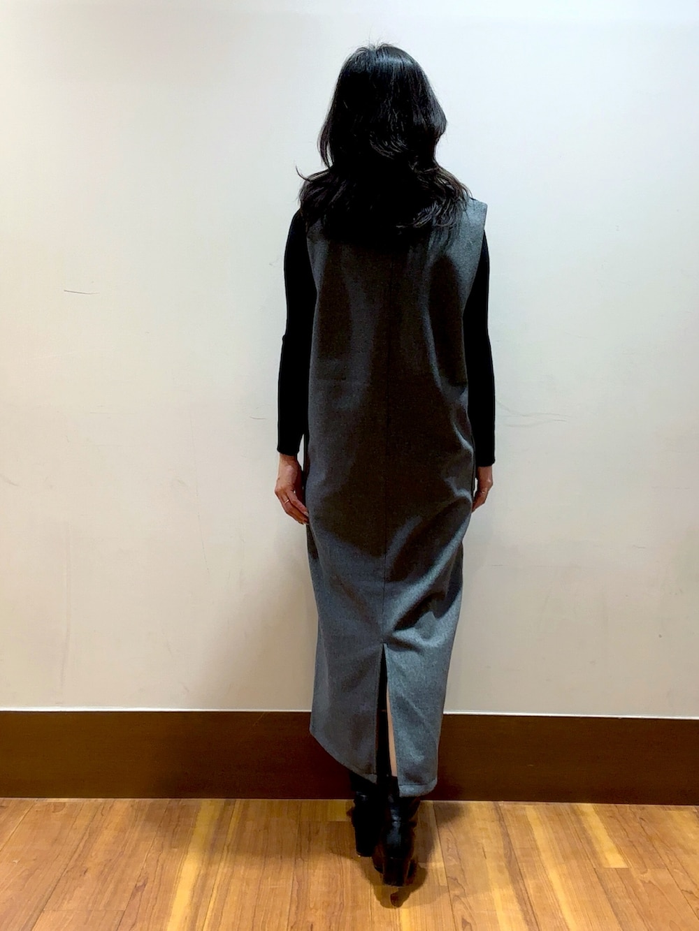 こちらのジャンスカは、深めのVネックが顔まわりをスッキリみせてくれます😊
