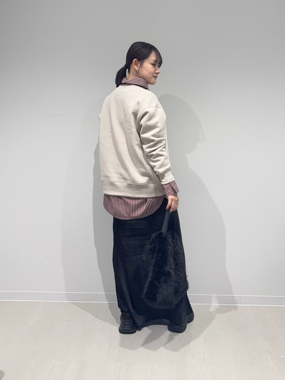 細身なシルエットのスカートで合わせることでカジュアルすぎない印象に◎