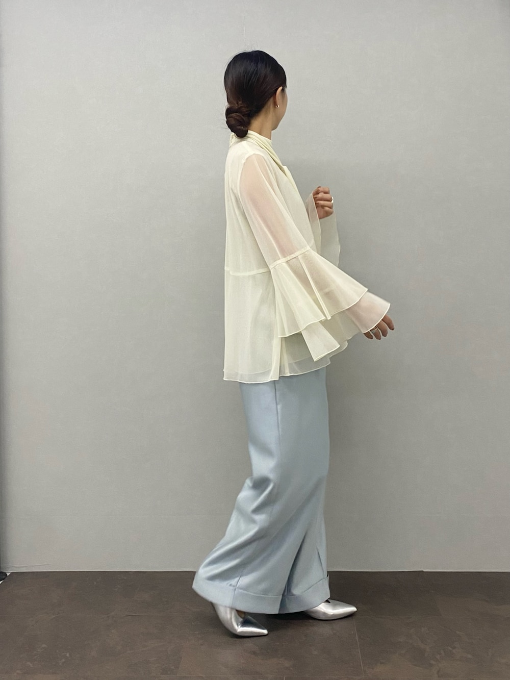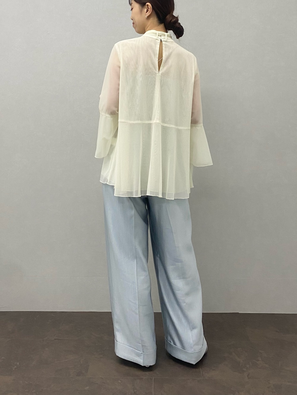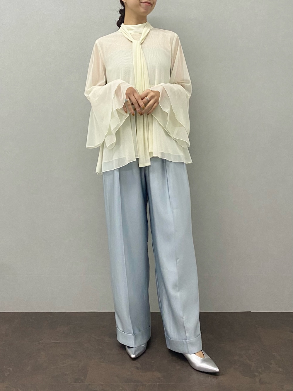ROSSOシアーラメチュールフレアスリーブブラウス- カラー: