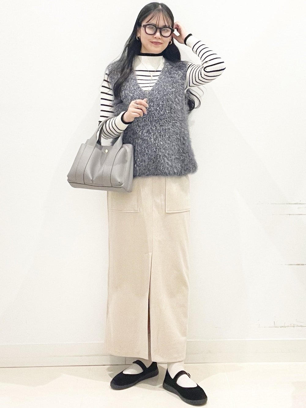 SENSE OF PLACEモールフェザーニットベスト- 着用カラー: