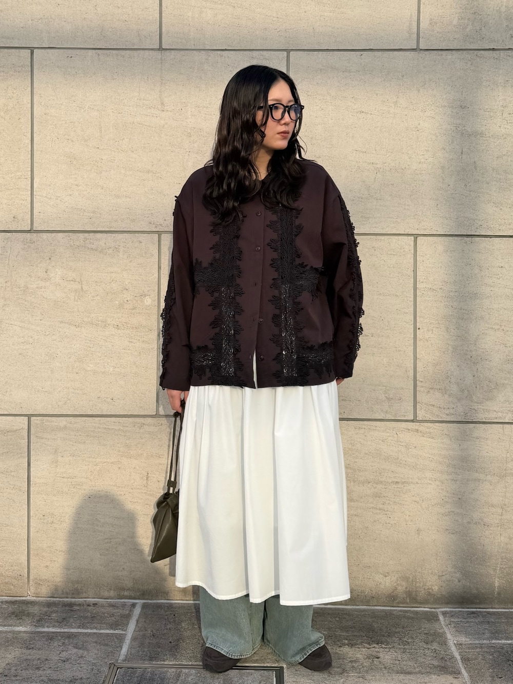 首元が大きく開いていて、落ち感もあるため、ゆるっと着るのがオススメです!