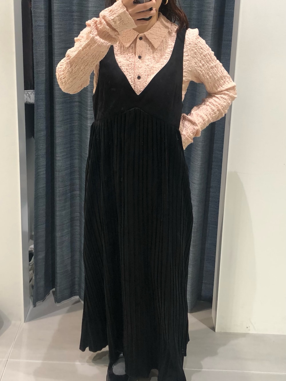 細かく縦にプリーツが入っていることで、腰回りのラインがスッキリ見えます。
