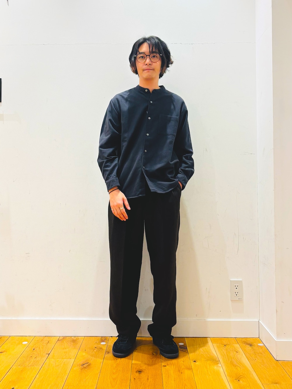 身幅のあるアイテムなのでインナーに厚手のアイテムで合わせても違和感なく着ていただけます。