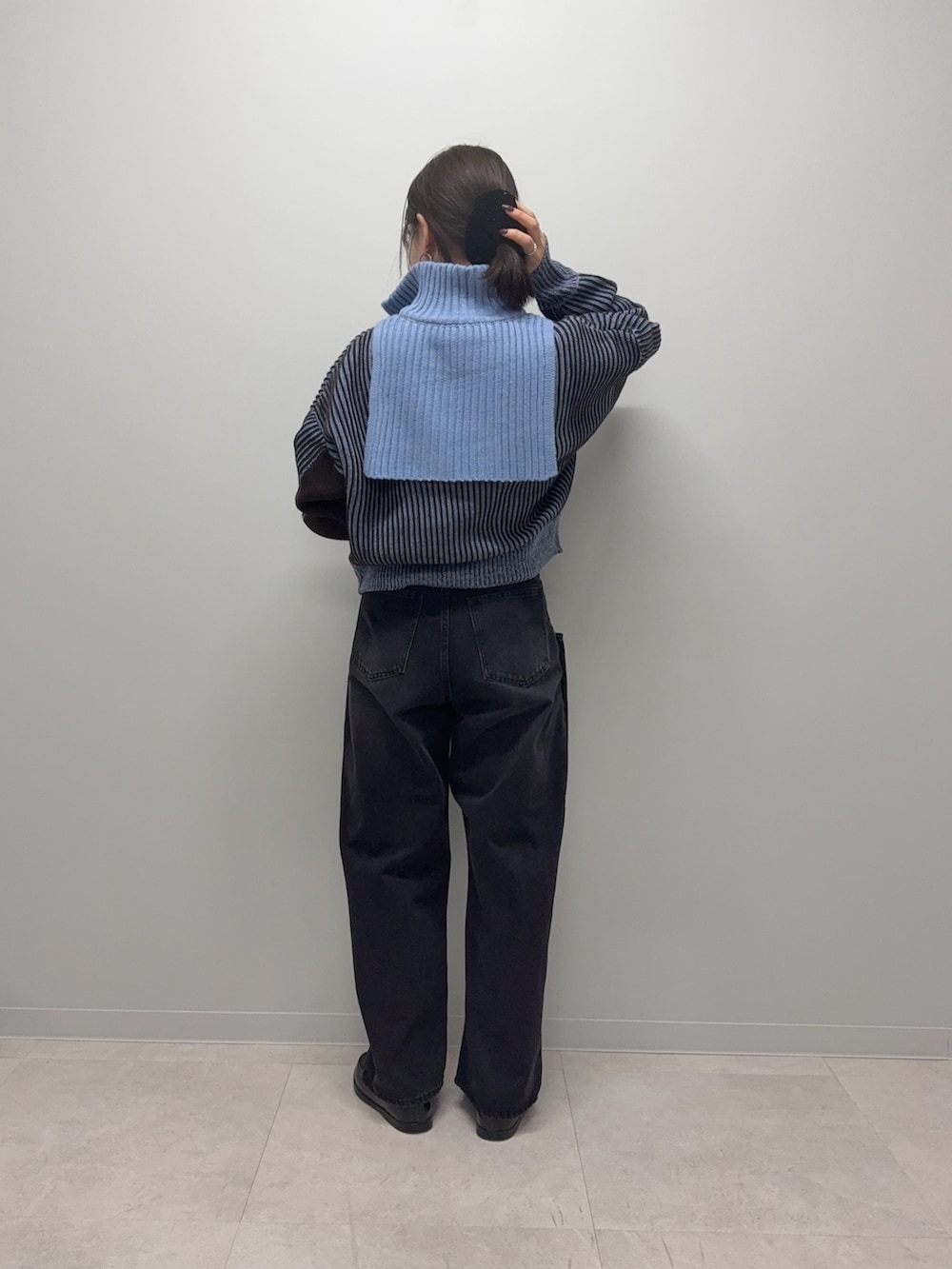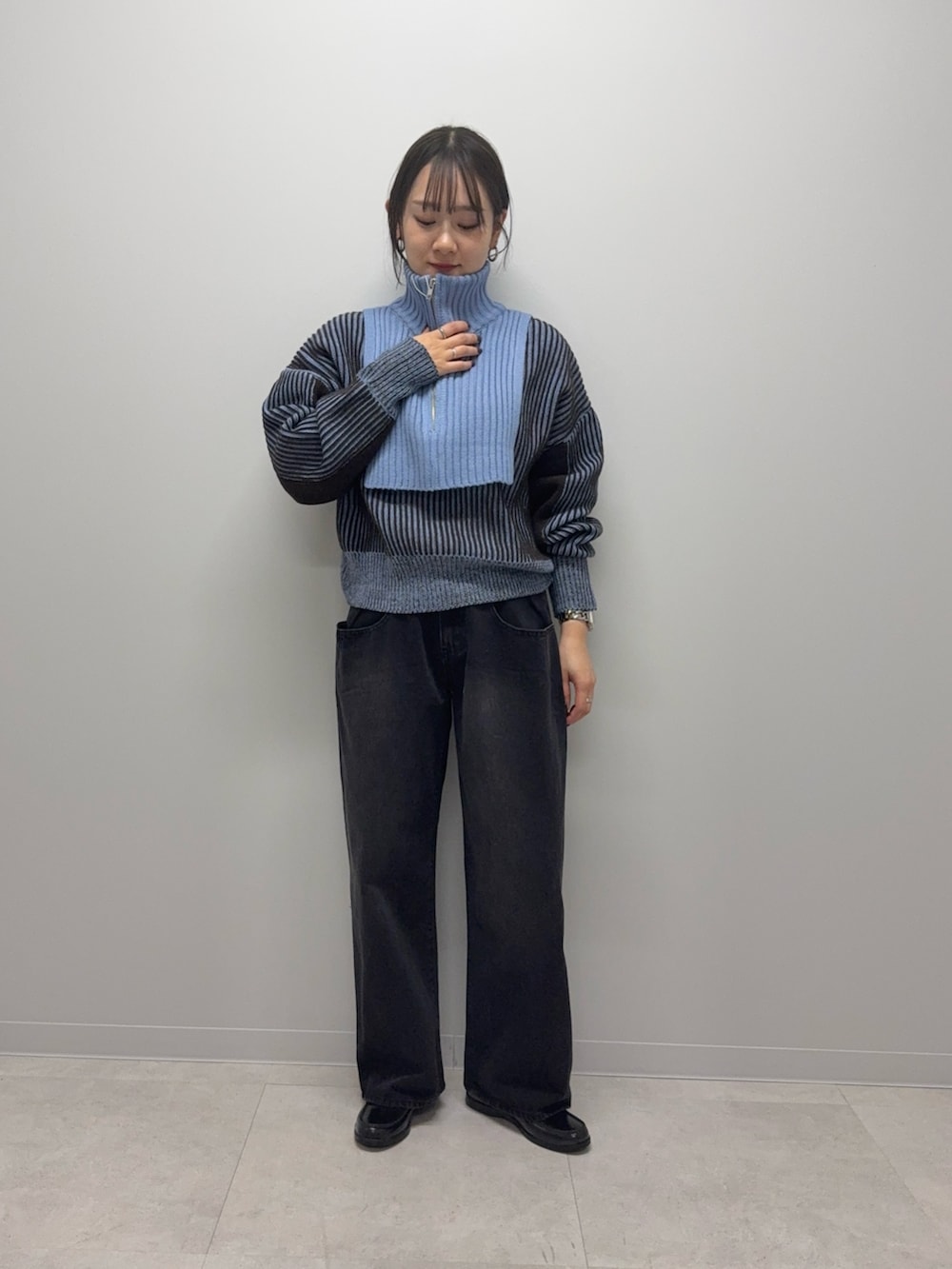 ZIPを開けて襟折って来ると顔周りスッキリした印象にもなります◎