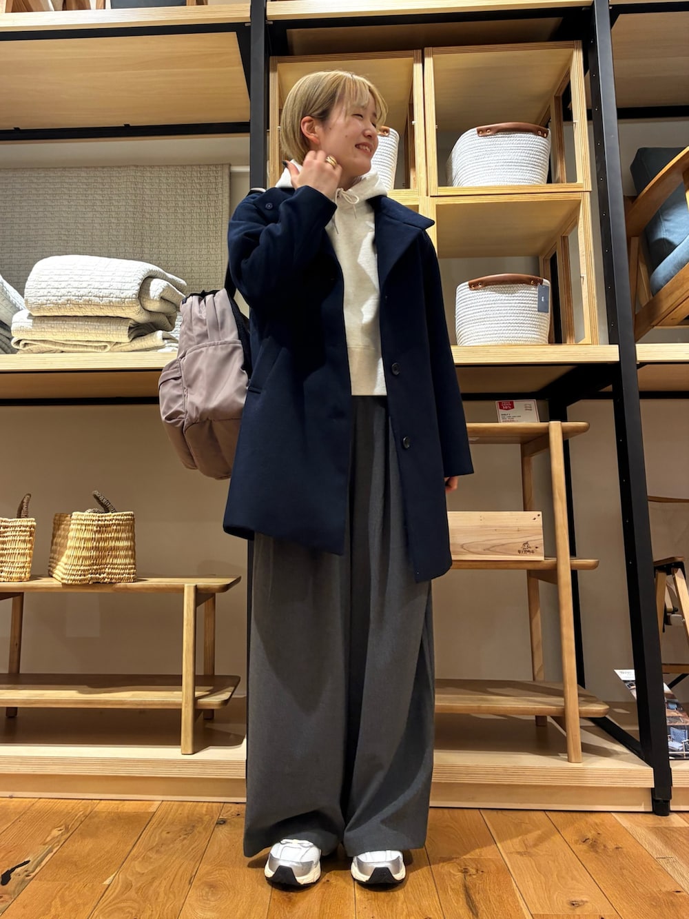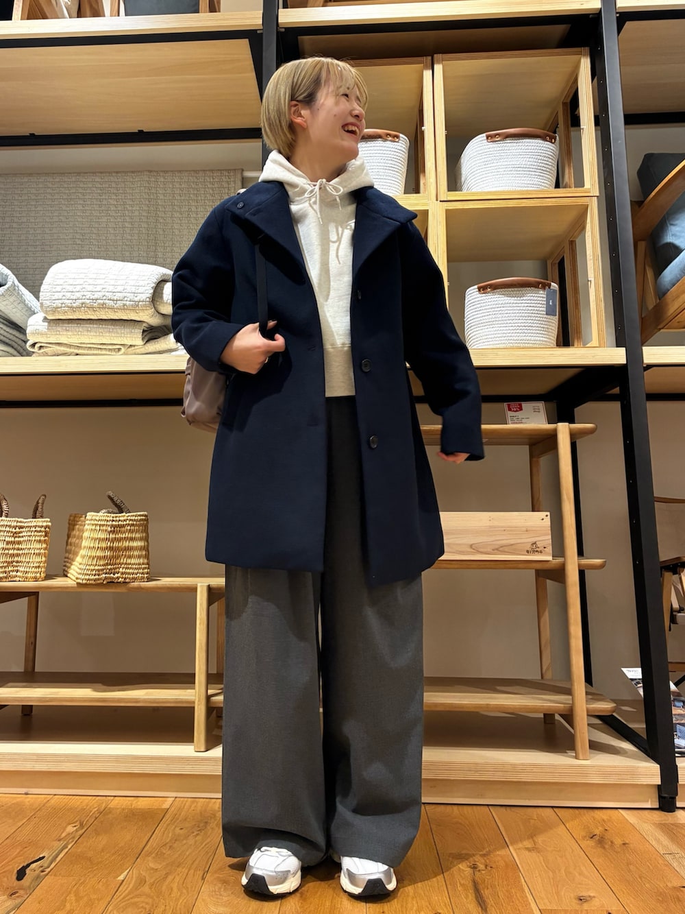 フォークの短丈フーディーは、袖当たりがゆったりしていて、裏起毛もついているので暖かいですよ〜