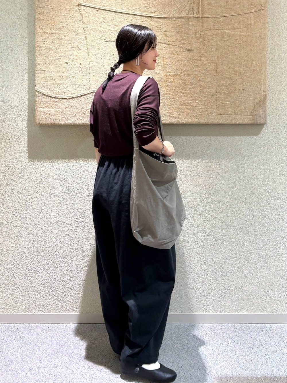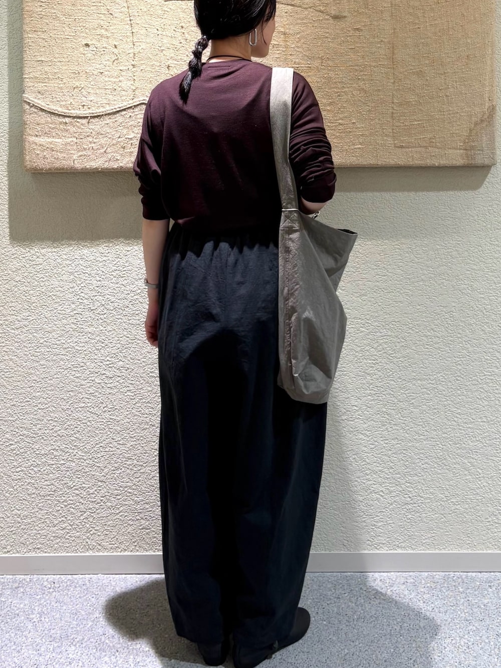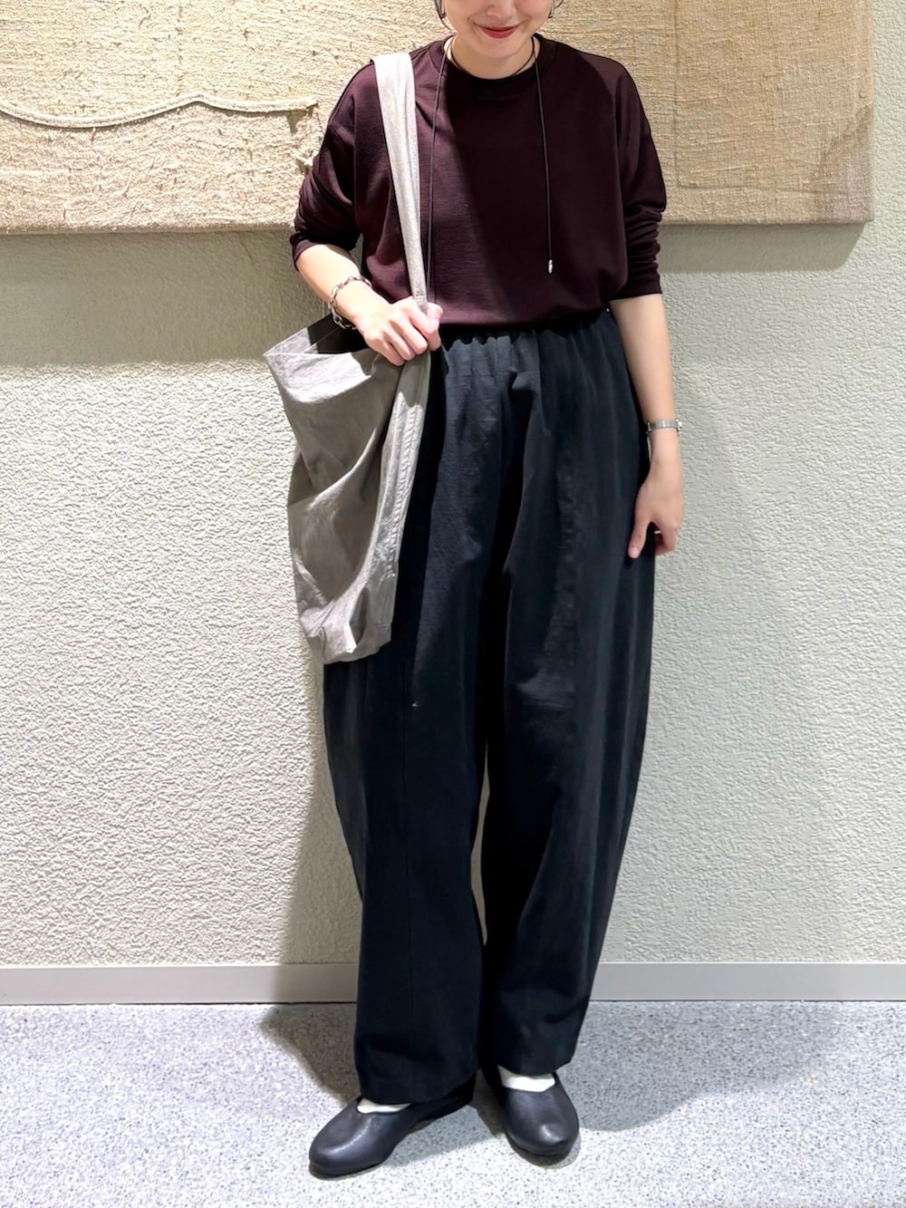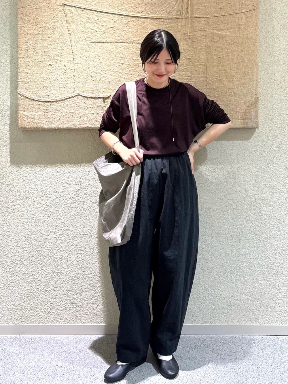 ・トップスのシンプルさに対してボトムスのボリュームがバランス良く、洗練された印象