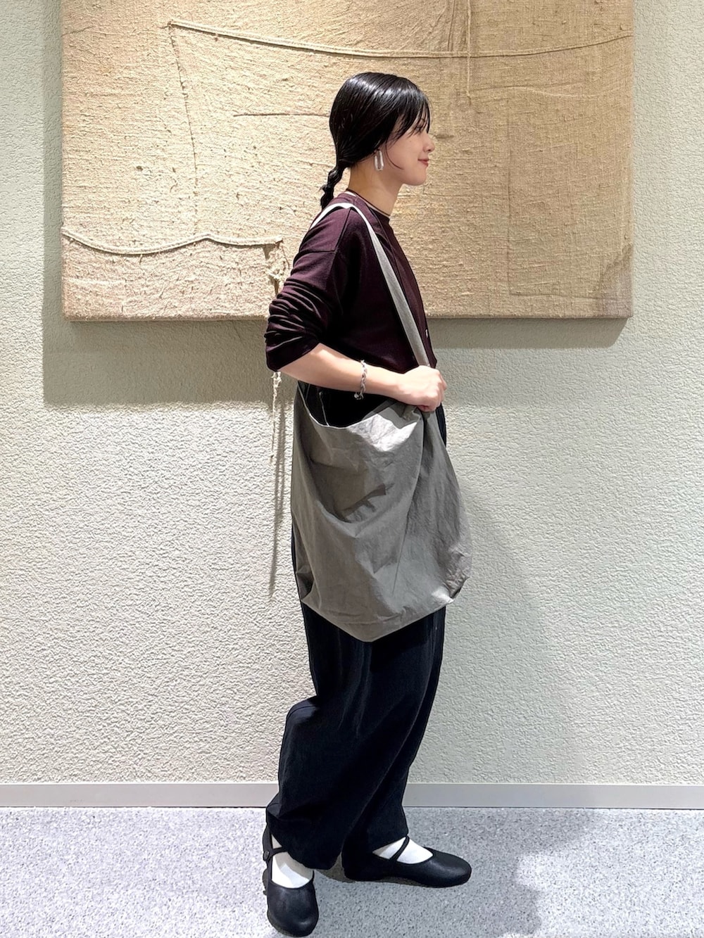 ・ゆったりシルエット同士でも素材の軽さで重たく見せないスタイル