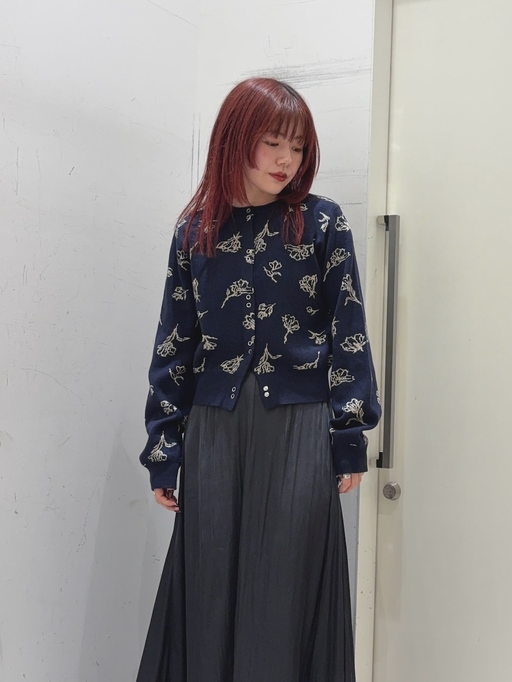 SENSE OF PLACE『洗濯可』ジャガードフラワーコンパクトニットカーディガン- カラー: