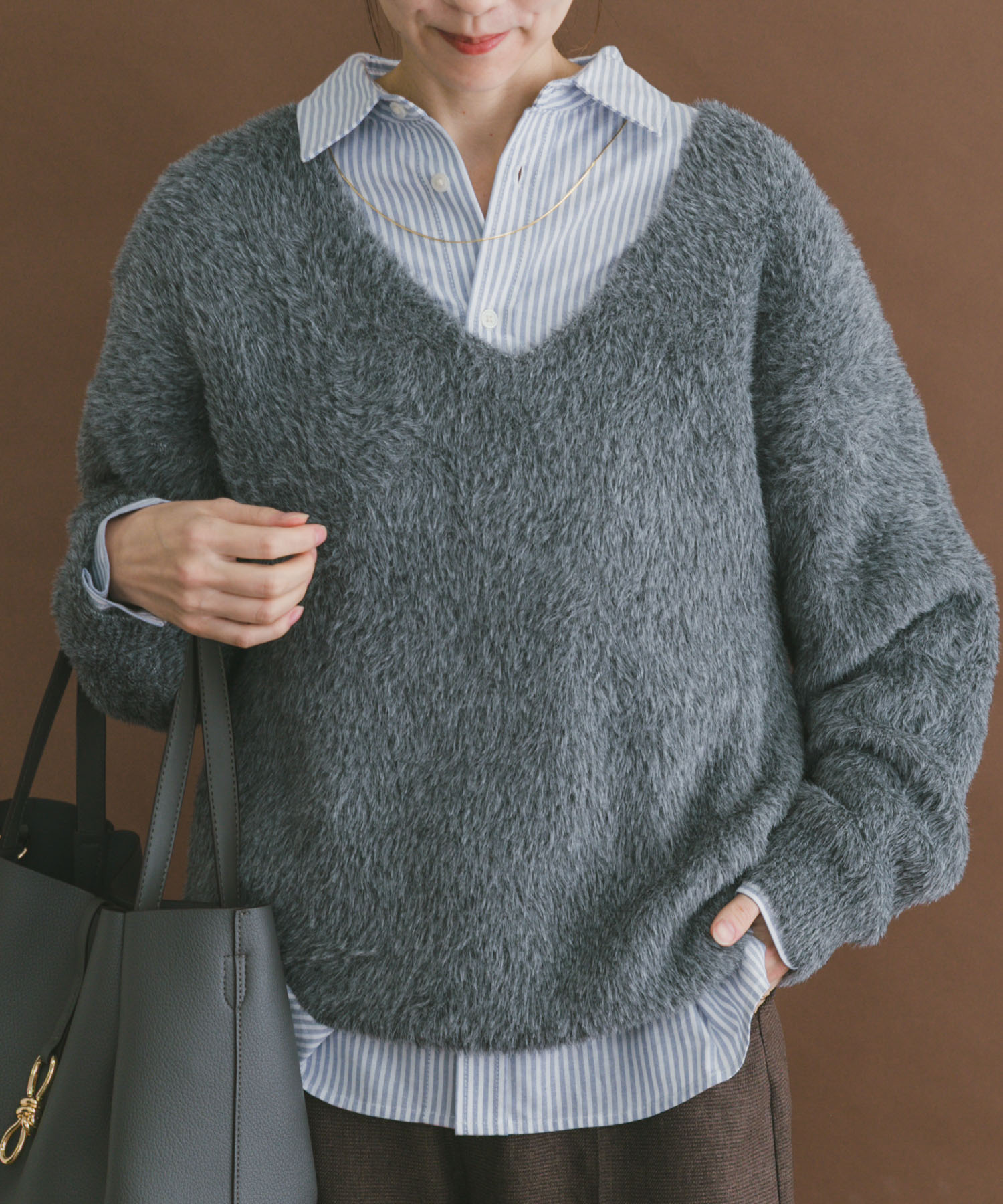 シャギー感がおしゃれなVネックニットは