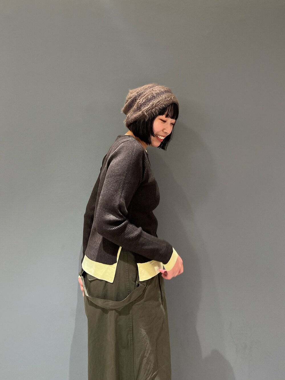 レイヤード風なのにニット同士がくっついついているので、1枚でもおしゃれに!!