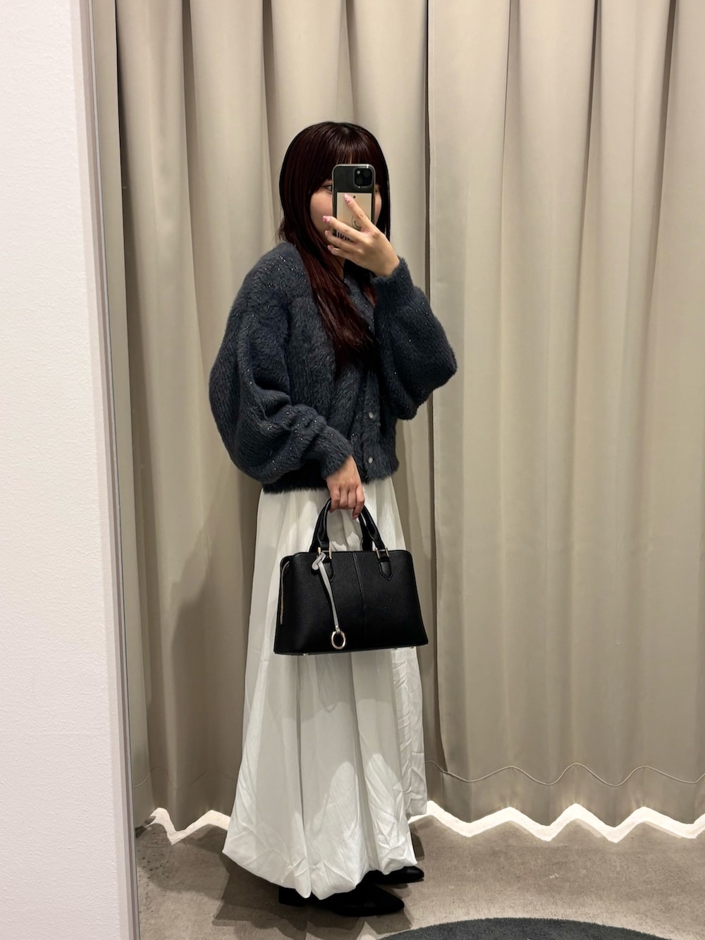 短丈のカーディガンとバルーンスカートの相性◎です✨