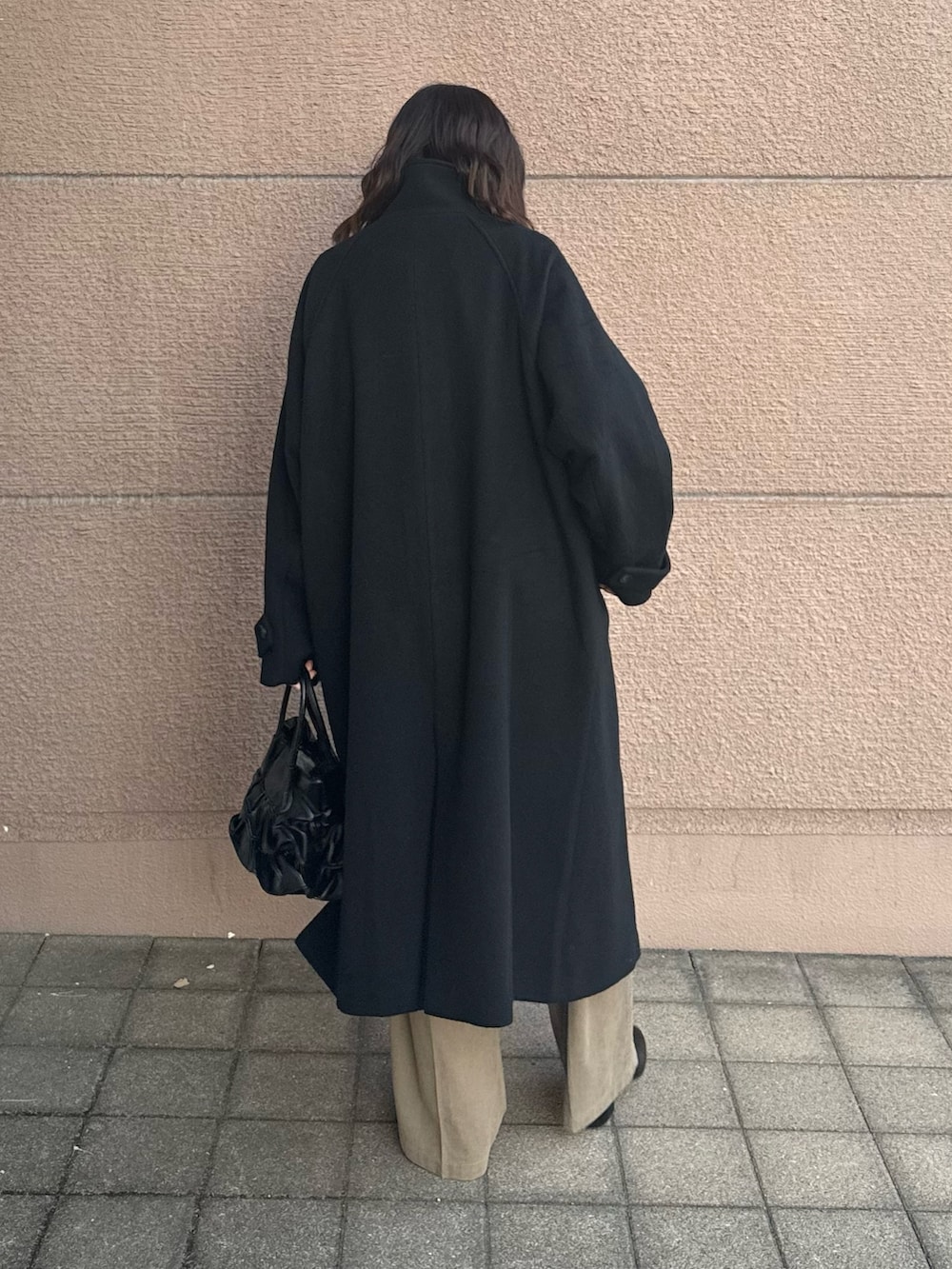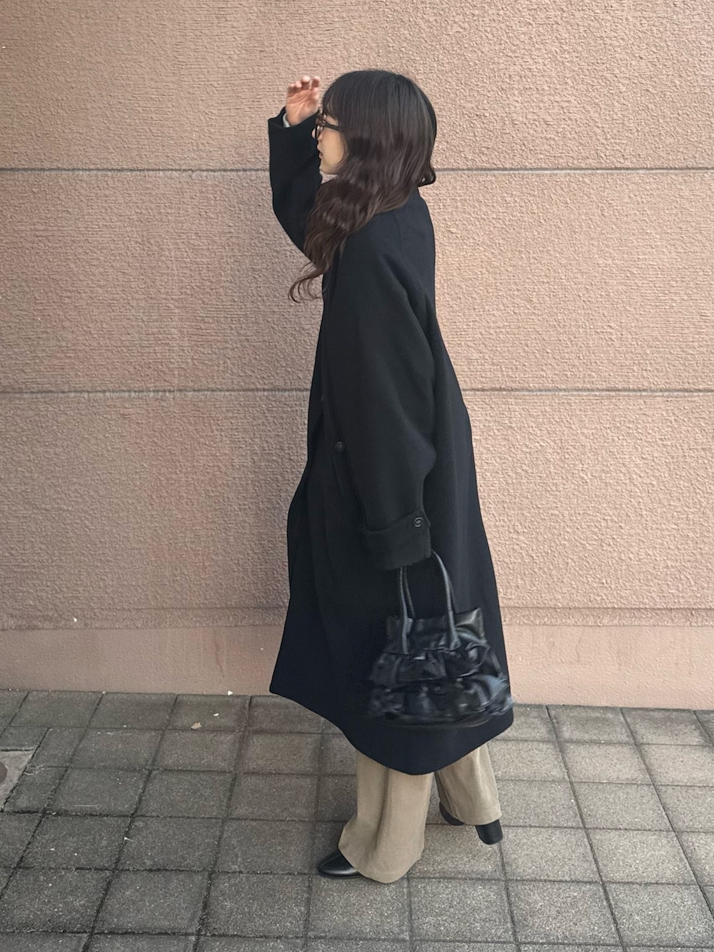 アウターは尾州ウールロングコートでシルエットが綺麗なアイテムになっています!肌触りがよく高品質のウールを使っているので重すぎなく着ていただきやすきアイテムだと思います!