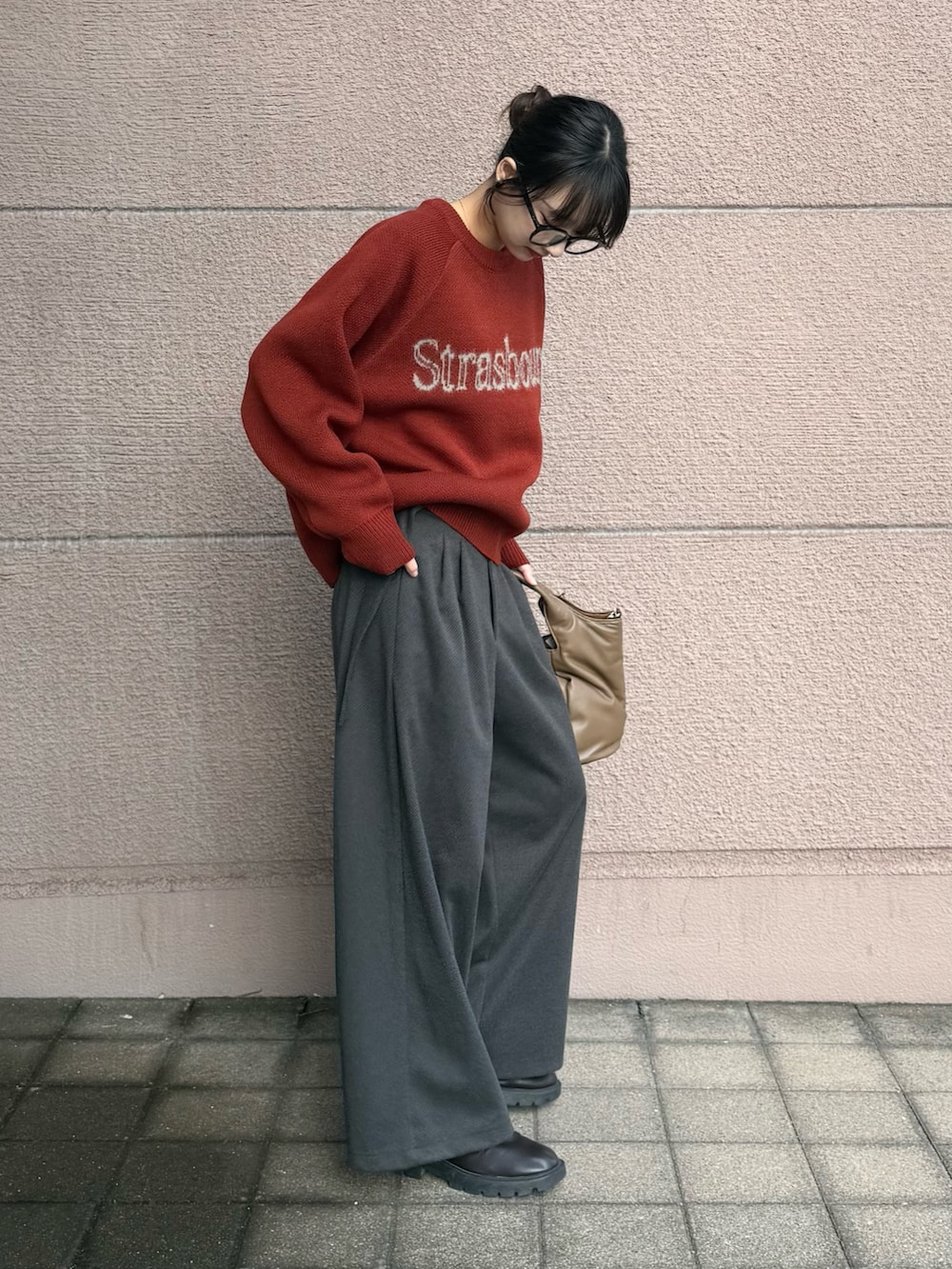トップスはスウェットロゴニットで色味とデザインが可愛いアイテムになっています!ロゴもシンプルで可愛くて少し分厚めで暖かいです!色味も秋冬感あってとても可愛いです!