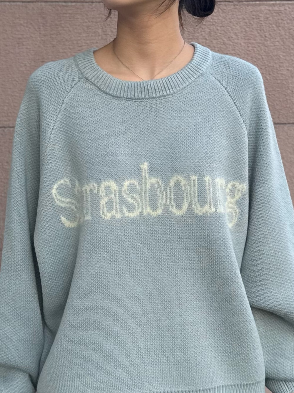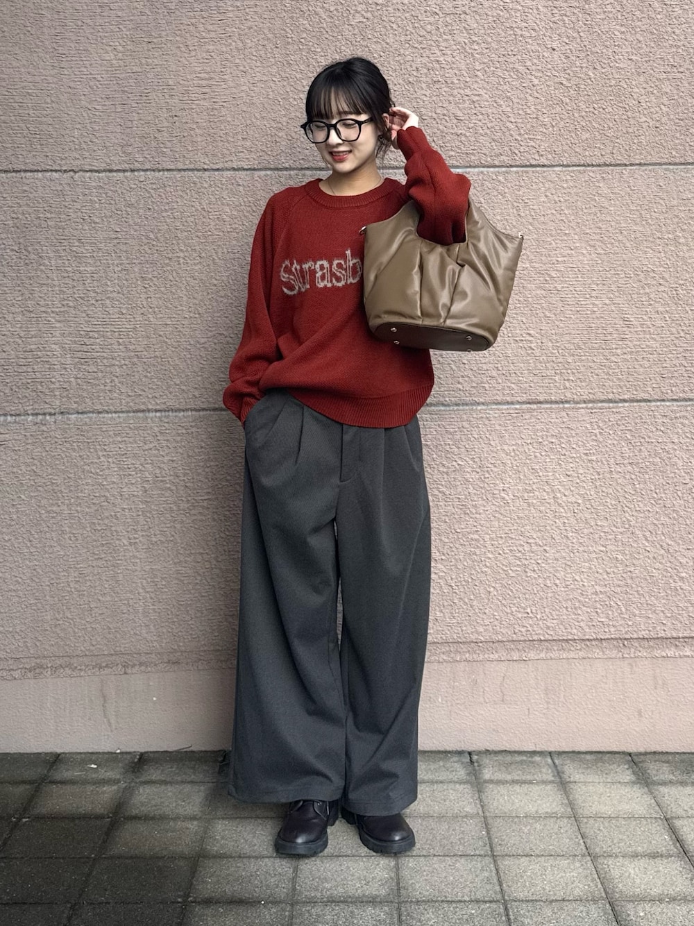 トップスはロゴスウェットでデザインと色味がとても可愛いアイテムになっています!シンプルなので着回ししやすくおすすめです!