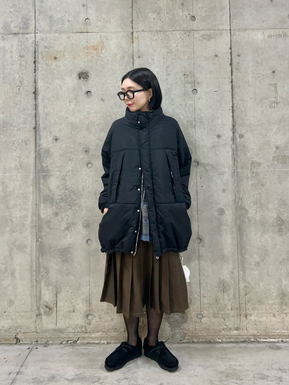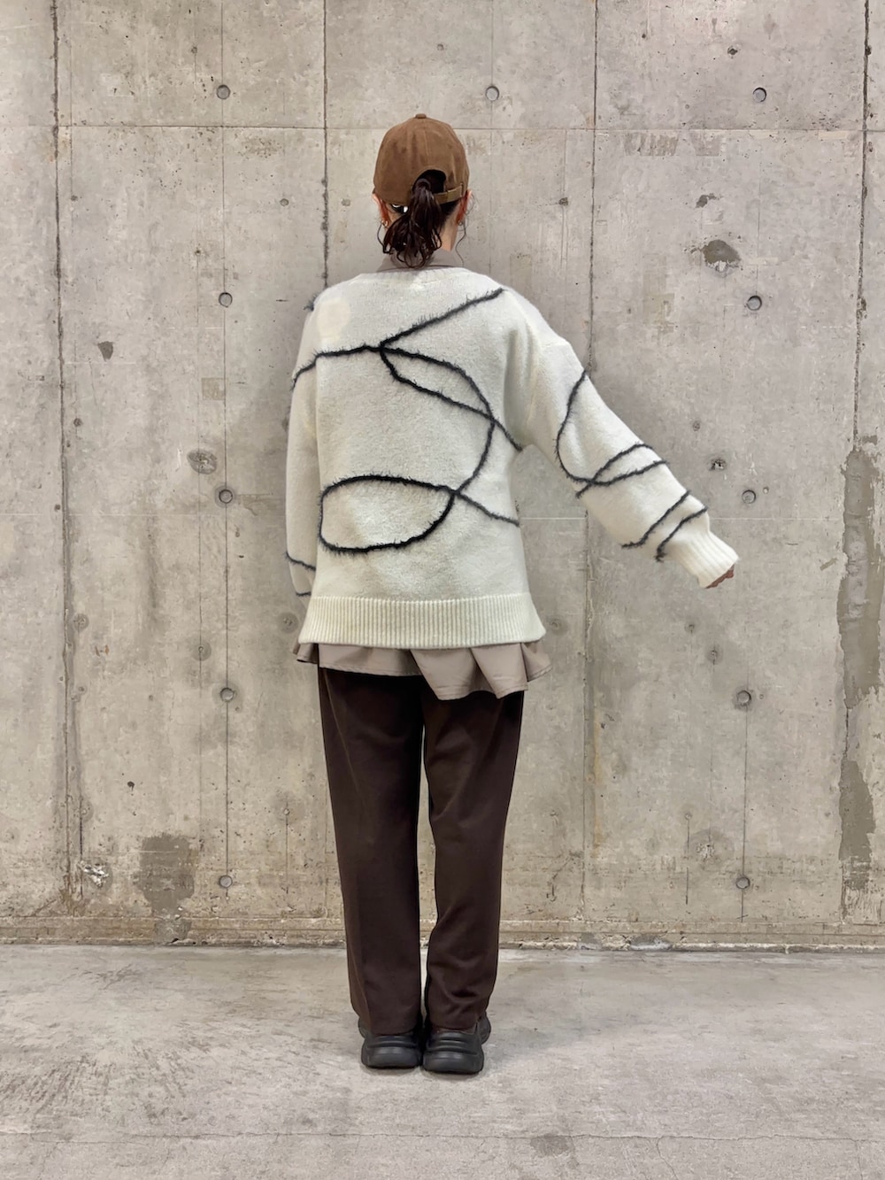 ビッグシルエットのニットに、モカのシャツを合わせたカジュアルコーデです🤎