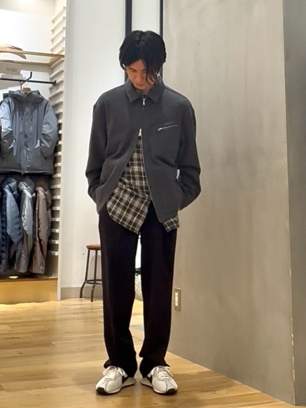 ウール100%のボディと左胸の斜めジップがヴィンテージライクな雰囲気もある一着。