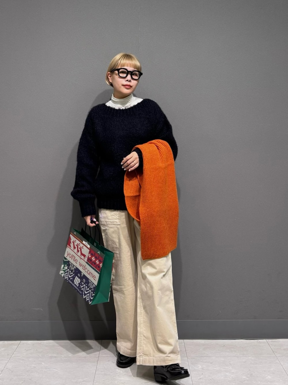 今回はネイビーを着てみました。