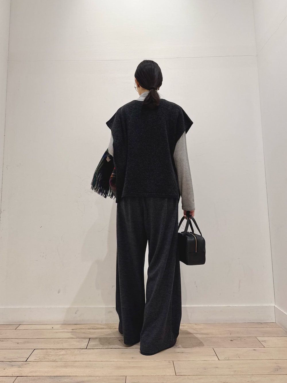 パンツは落ち感があるウールカットソー生地で、きれいめもカジュアルも馴染みやすいアイテムです!