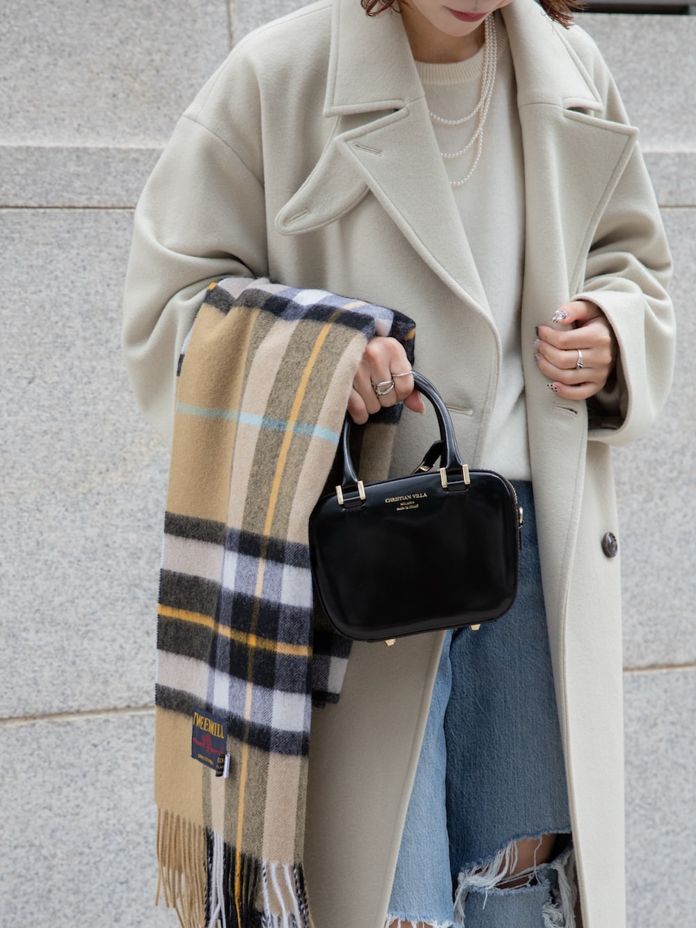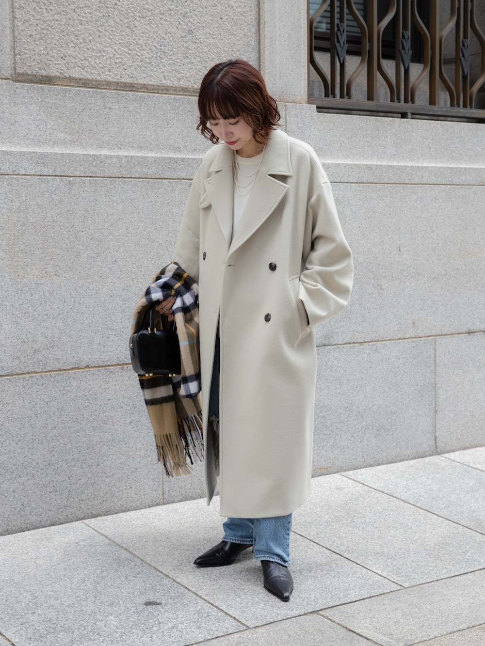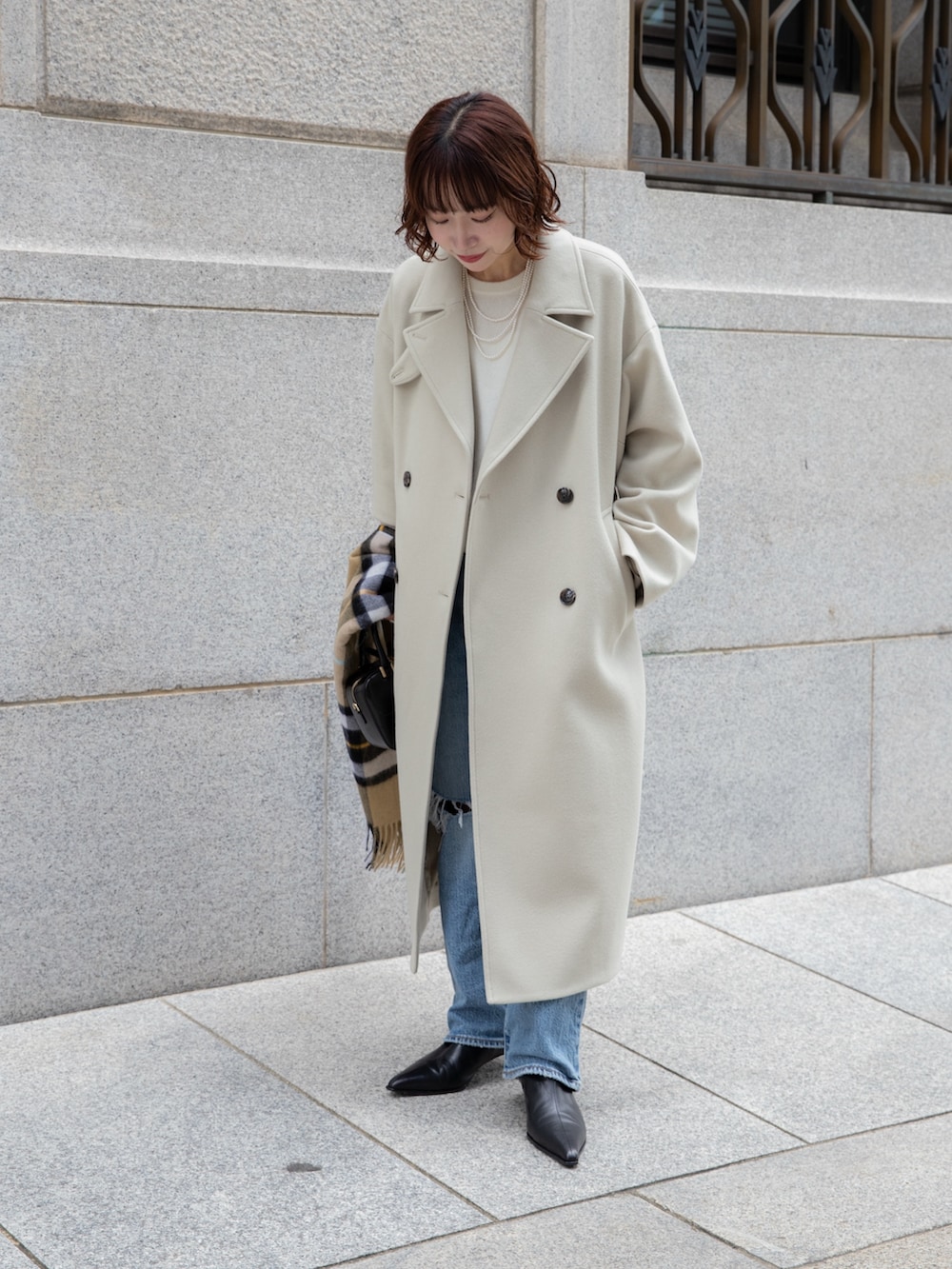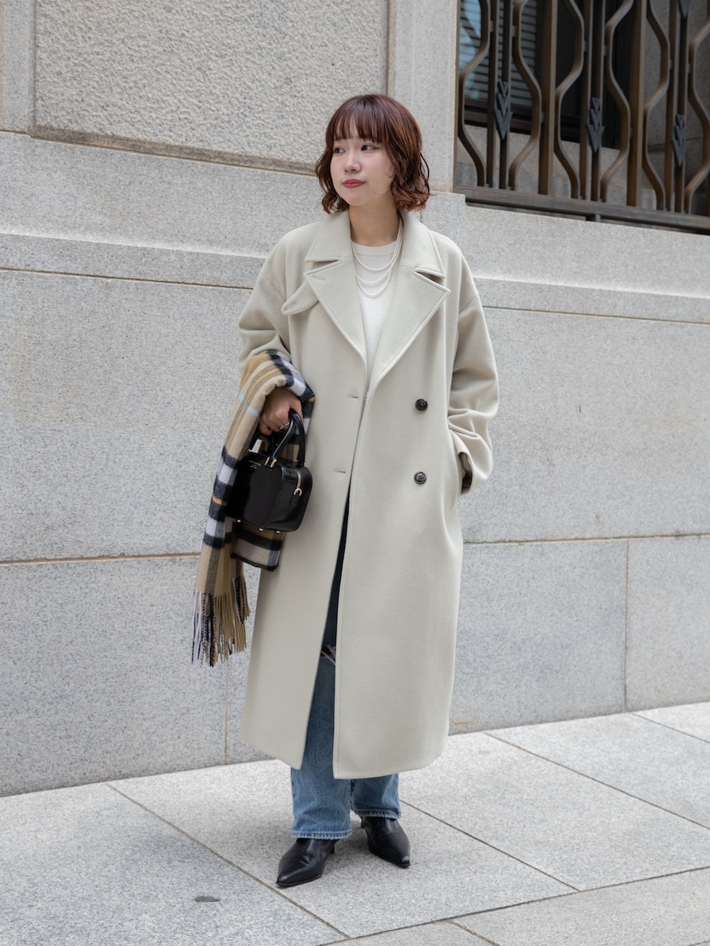 低身長さんはロングコート避けがちかと思いますが、こちらは身長に合わせて選べる2サイズ展開かつ、ベルトで絞ると身幅をよりすっきりさせれるので、低身長さんでも挑戦しやすいです👀🔍