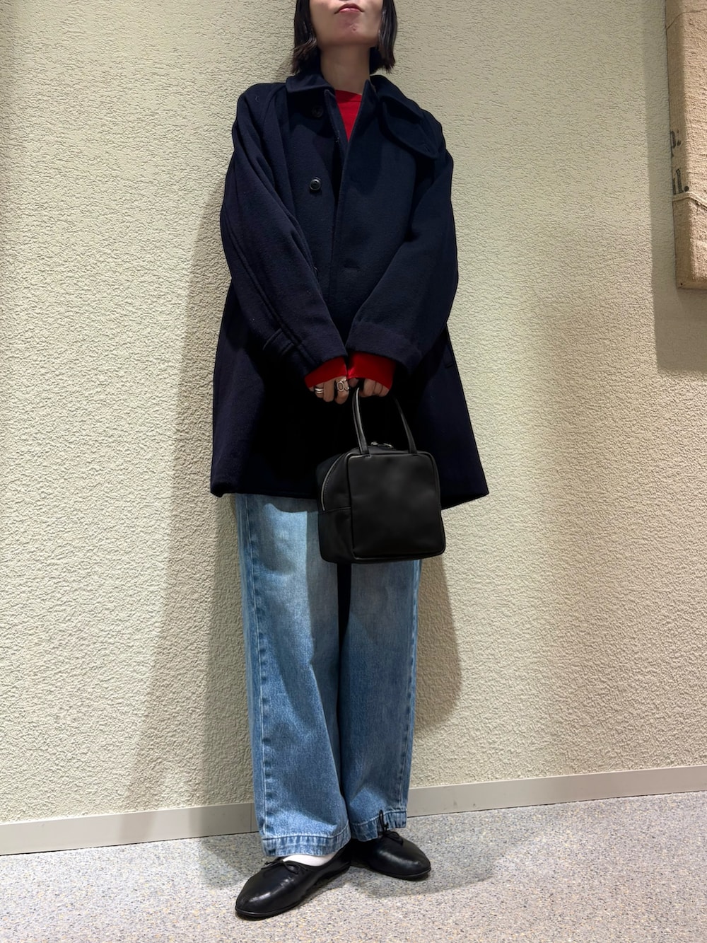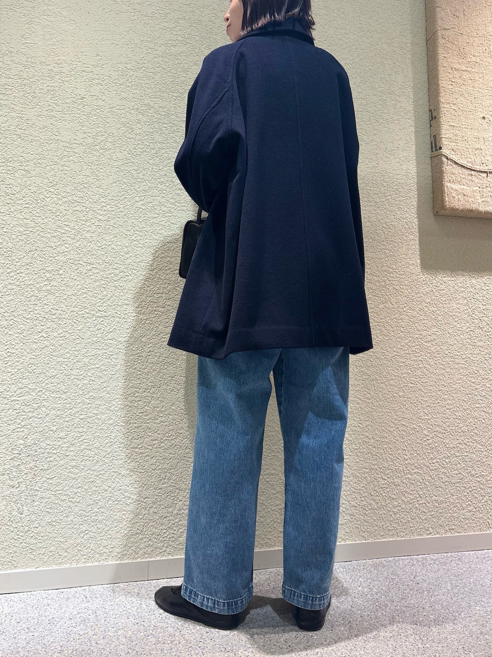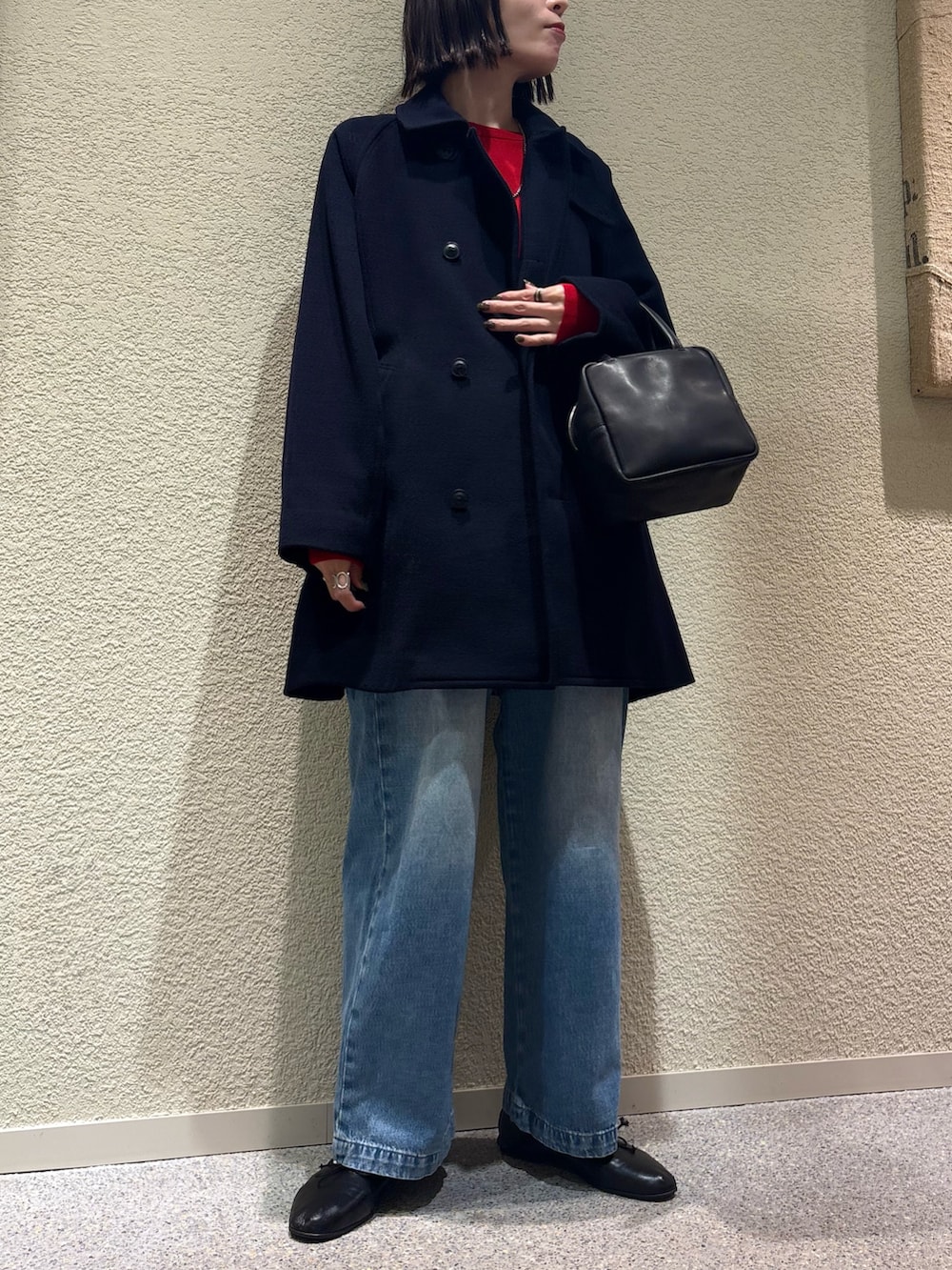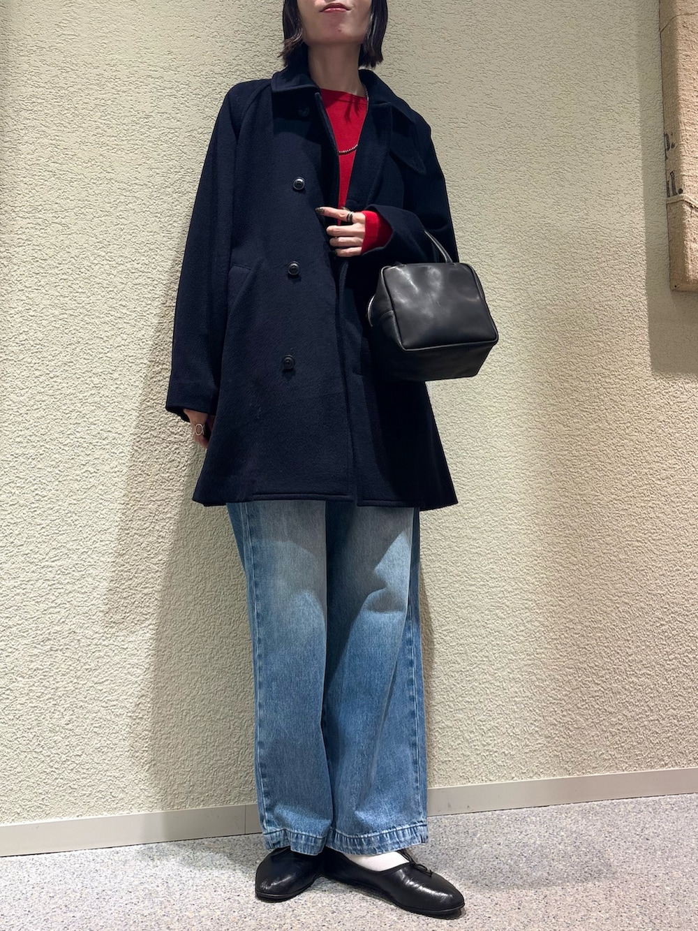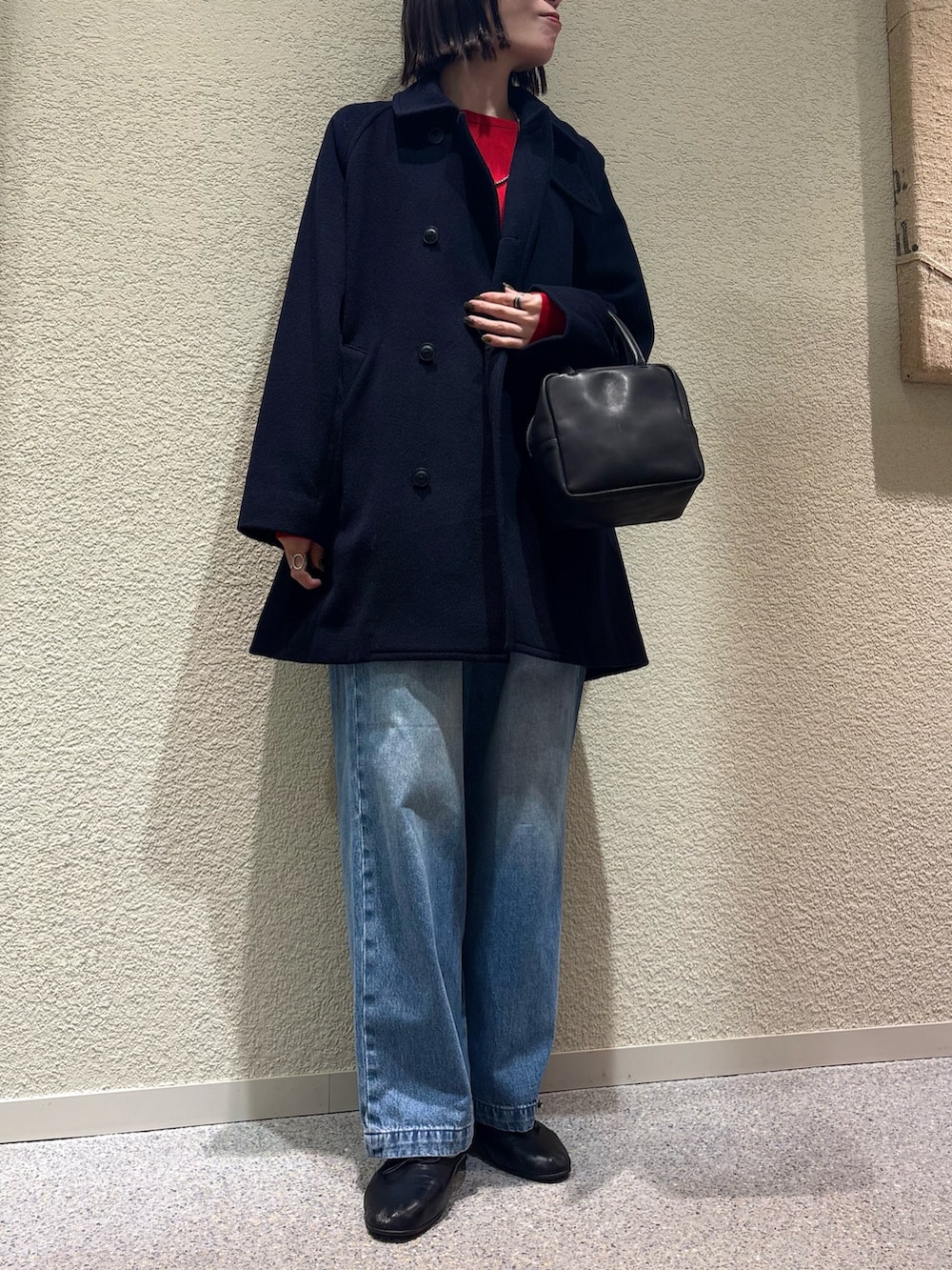 大人が着やすいデザインのPコートで、ゆとりのあるシルエットで抜け感がでます。