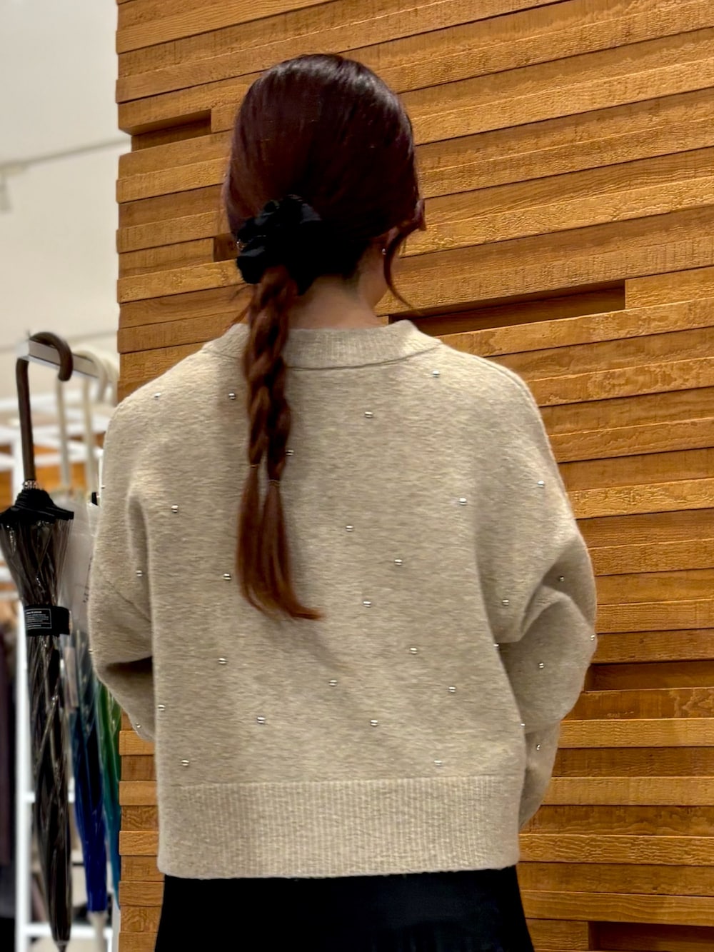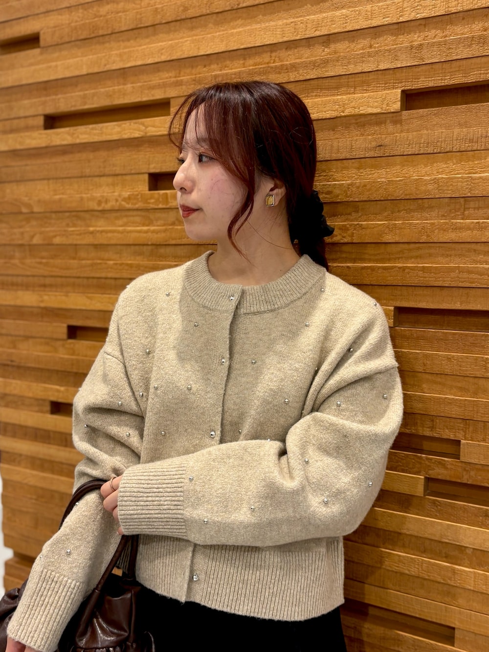 ドット柄のようにボールスタッズを散りばめたシンプルながらも華やかさをプラスしてくれるカーディガンになっております🤎