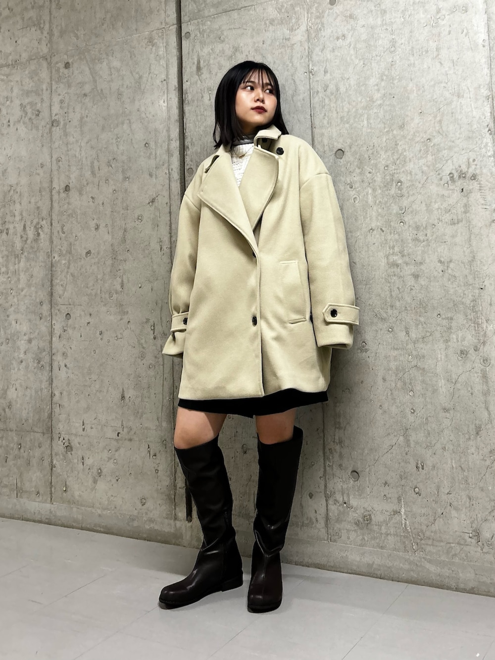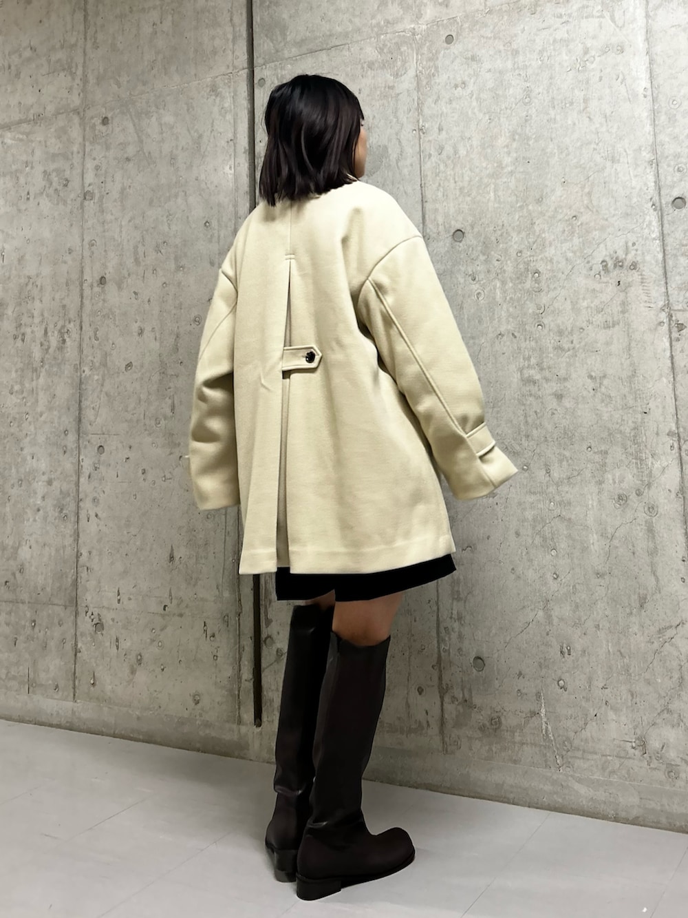クリーム色がかわいいアウターは冠婚葬祭やビジネスにも使えちゃう高級感のある生地です!
