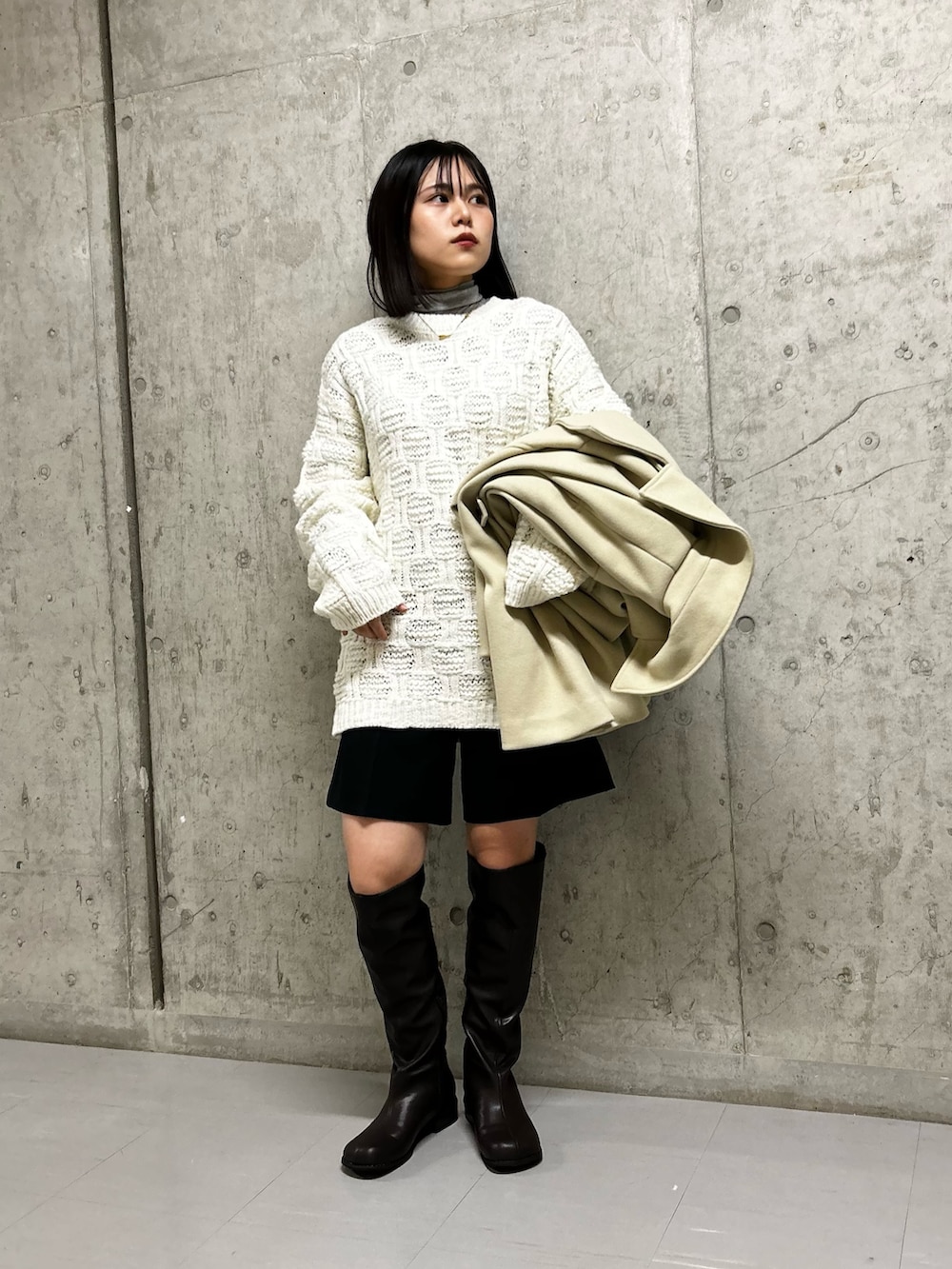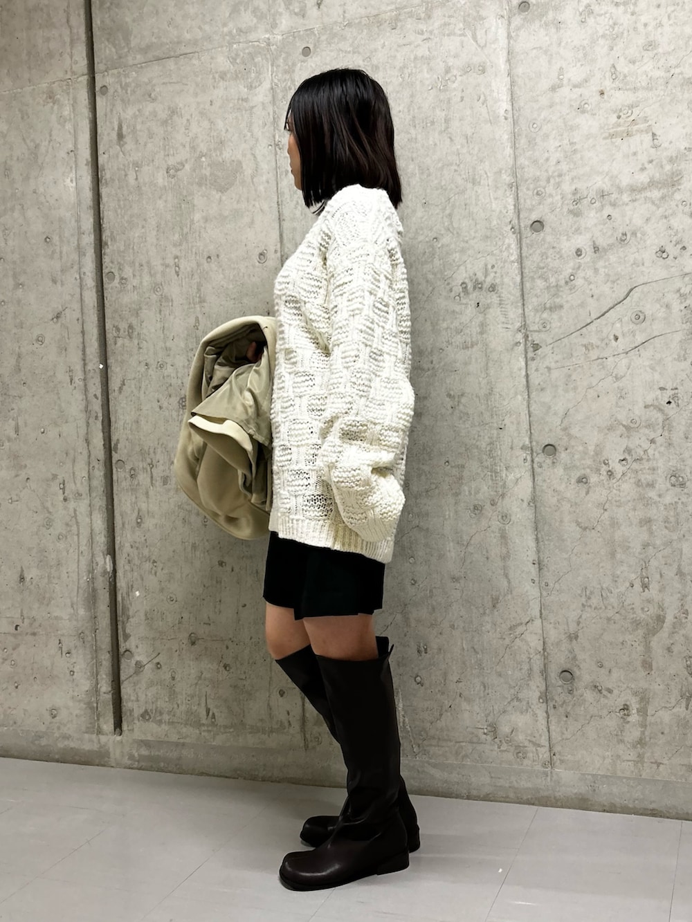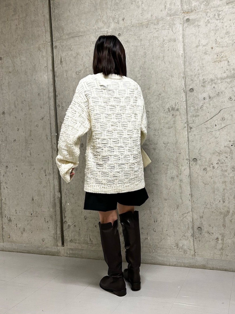 中のニットはグリッドのざっくりあみで、シンプルなお色味ながらも他のお洋服と差がつけられるアイテムです🤍