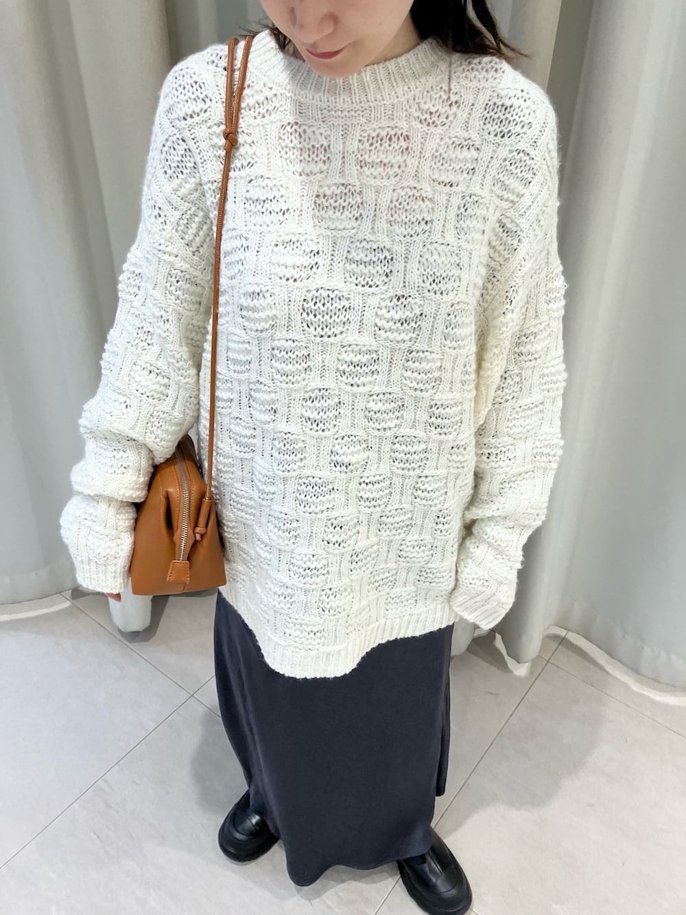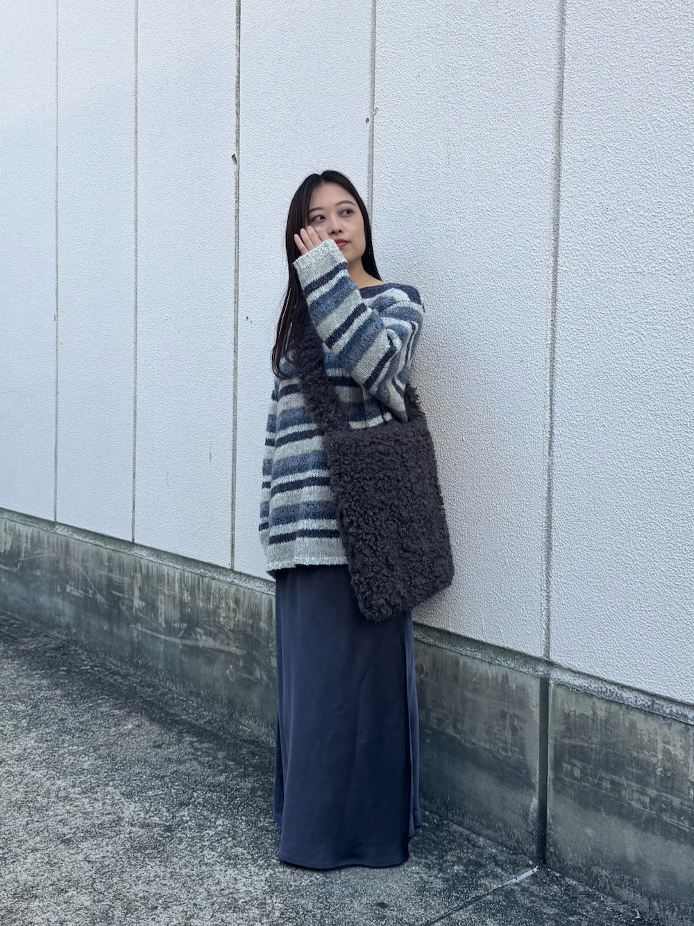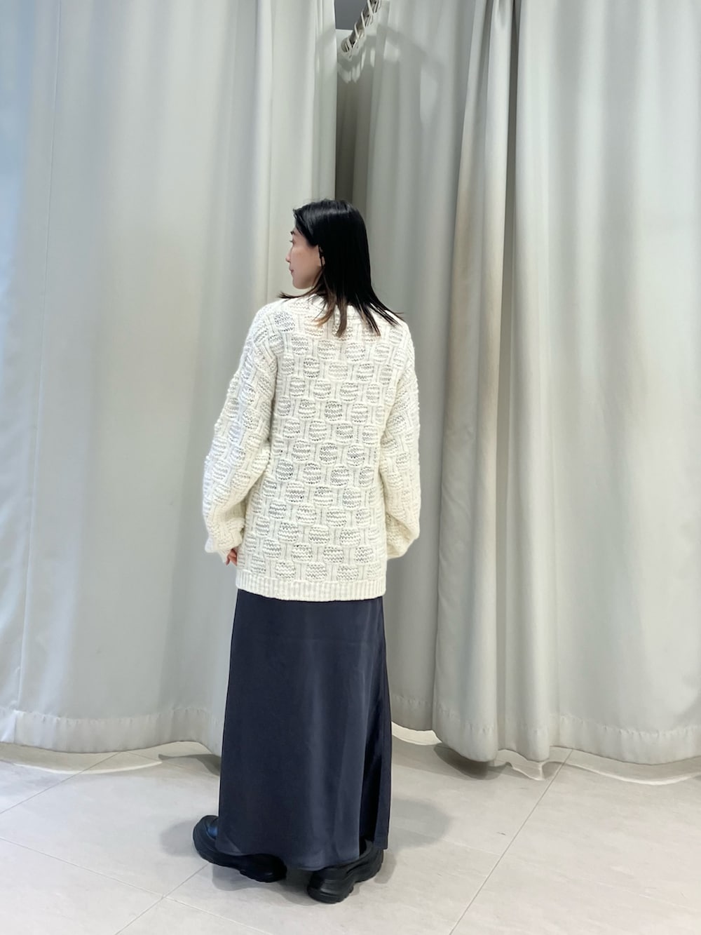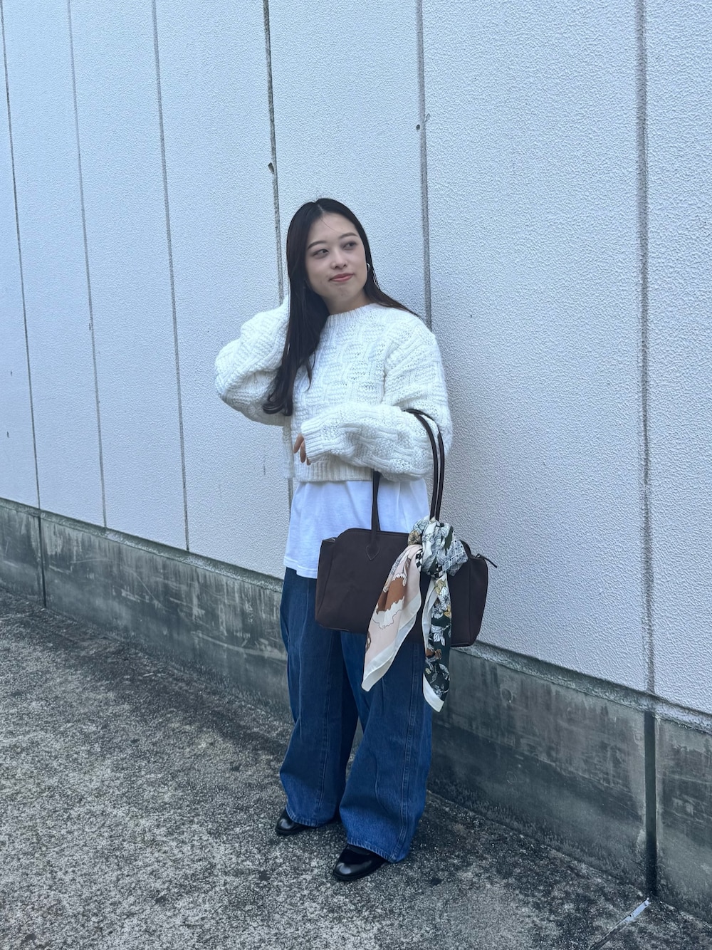 冬のデートコーデを意識して、白ニットで女性らしいさを+してサテンスカートでカジュアルすぎないようにしました!!