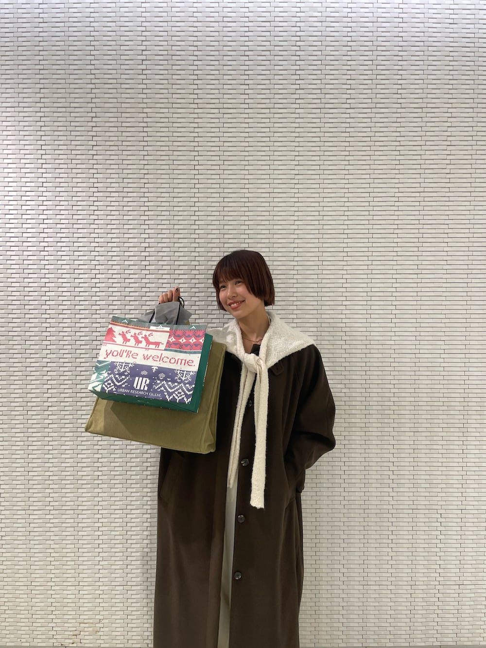 巻いている部分はくっついているものですが襟元に出してあわせるとカーディガンを巻いているふうにも◎