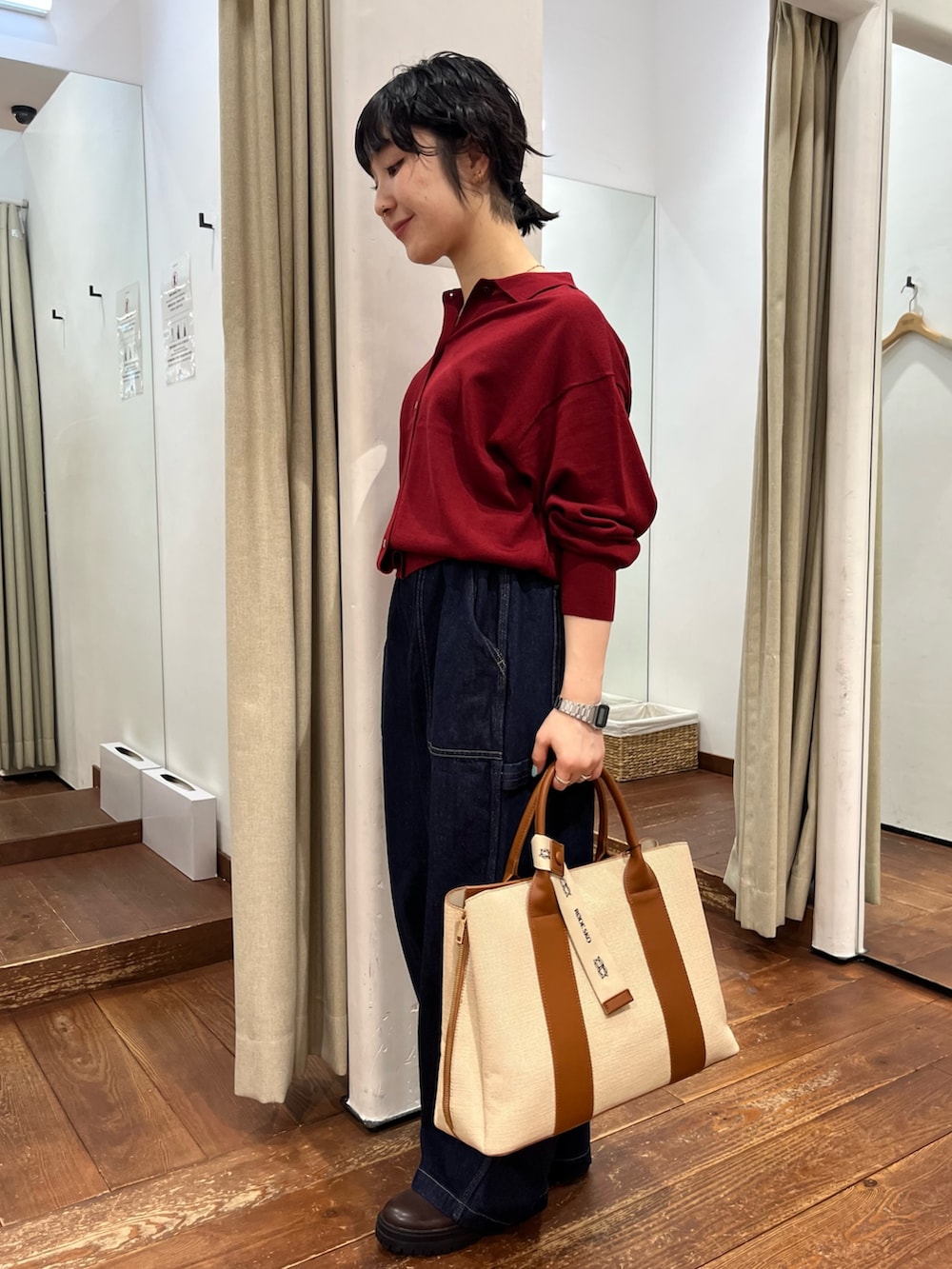 の印象がありますが、ポロニットと合わせてスッキリ抜け感あるスタイリングにしました🧣
